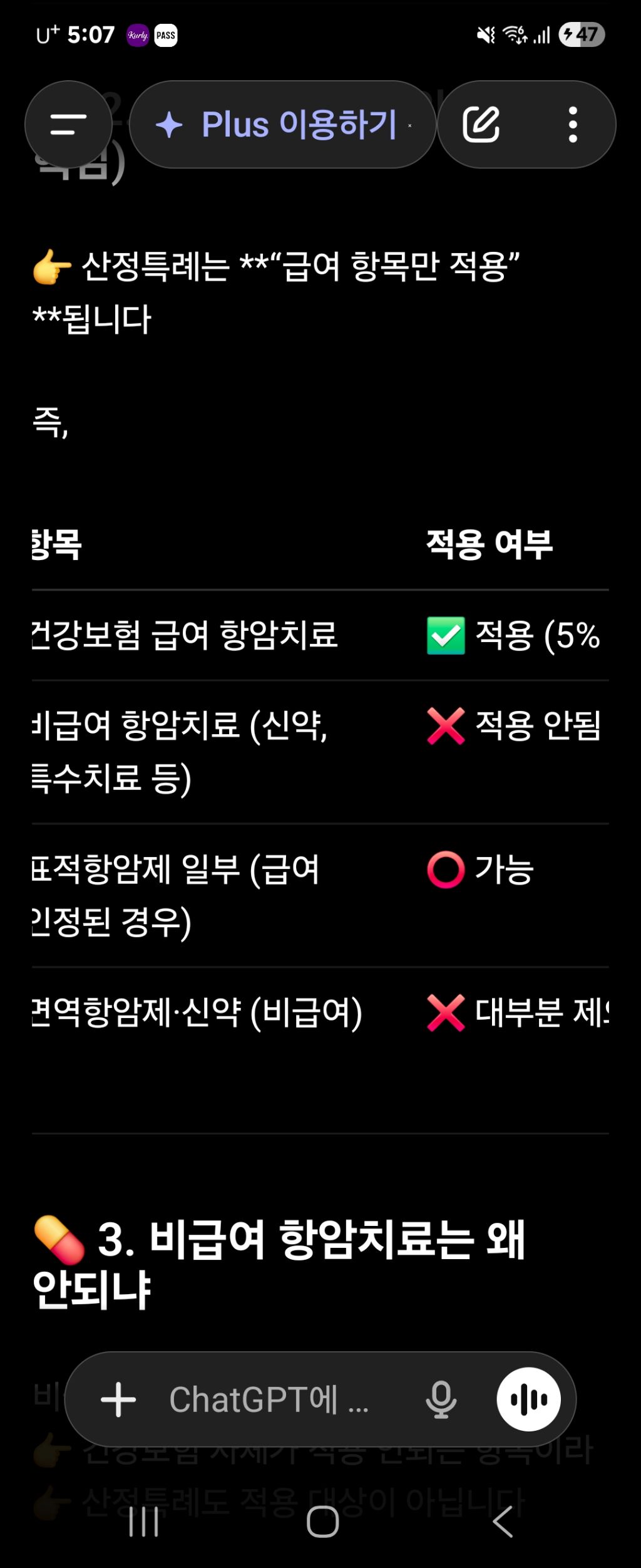 답댓글 작성자아랑아랑이 작성자 본인 여부 작성자 작성시간 26.04.10 비급여 치료까지는 건강보험으로 처리 안되는걸로 알았거든요 ㆍ님말씀이 맞다면 저도 안들것 같아요. 워낙 여러 사례가 있긴하겠죠? 챗gpt가 표적항암제도 일부 인정된 경우는 된다고하는군요 감사합니다