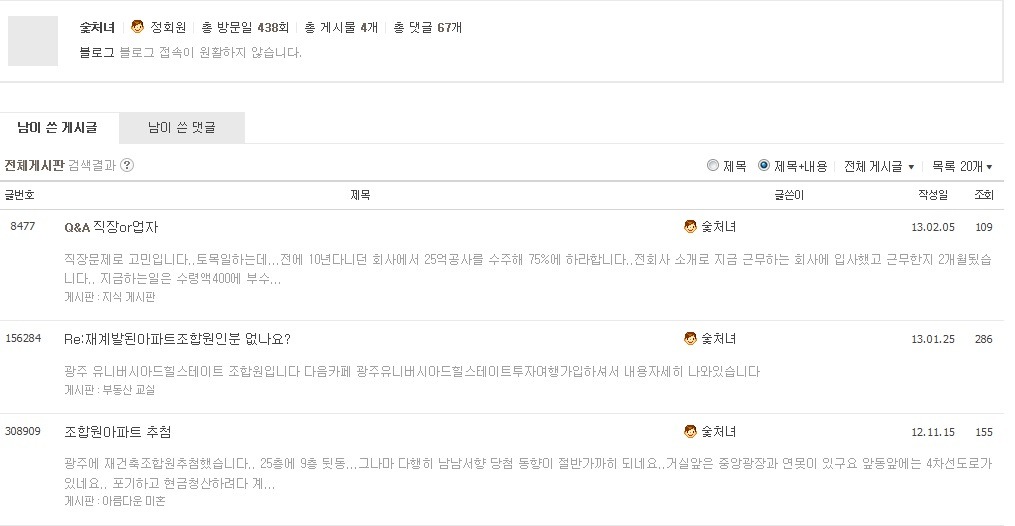 숯처녀..그새 글 삭제하고 튀었네요..참고하세요. 작성자먼 하늘 쳐다보기|작성시간13.05.15|조회수439 목록 댓글 0 글자크기 작게가 글자크기 크게가 다른 신상은 모르고....방문일수 등을 보니 같은 사람입니다... 다음검색 현재 게시글 추가 기능 열기 북마크 공유하기 신고 센터로 신고 댓글 댓글 0 댓글쓰기 답글쓰기 댓글 리스트