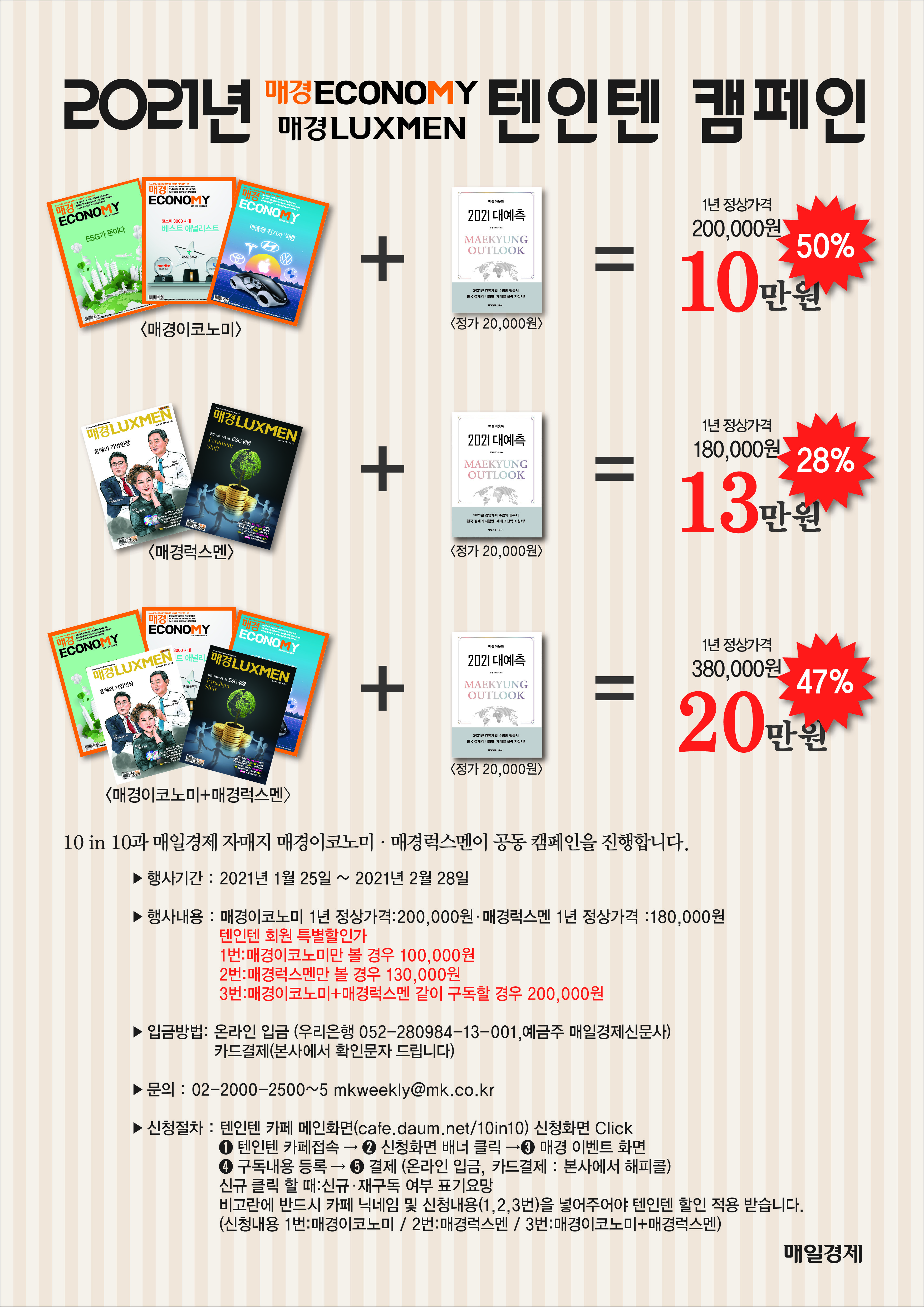 두가지 혜택에 더불어, 2021년 매경이코노미 할인 행사를
