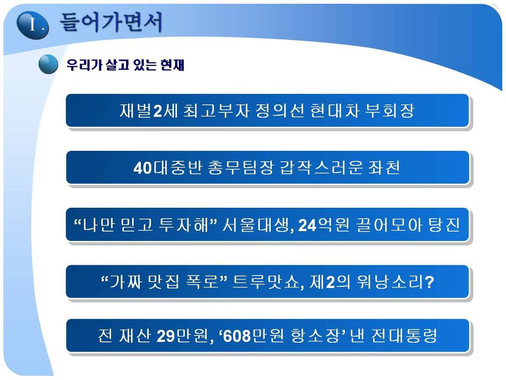 아래의 2001년 특강 자료는 공유해드립니다. 좀더 관심있는 분들은 경제적자유아카데미 게시판을 참고하세요. http://cafe.daum.net/10in10/6Ye1