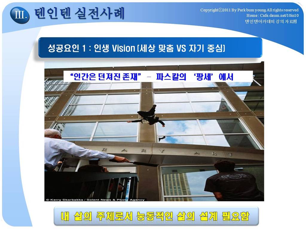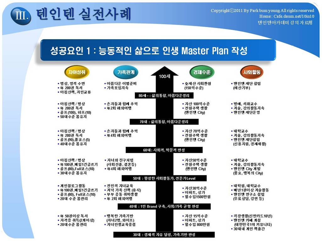 - 98년 입사, 99년 결혼해서 10년 노력하여 결과적으로, 10in10을 넘어서 15in10 달성한 카페지기의 실전적인 경험내용을 스토리 중심으로 설명하면서,