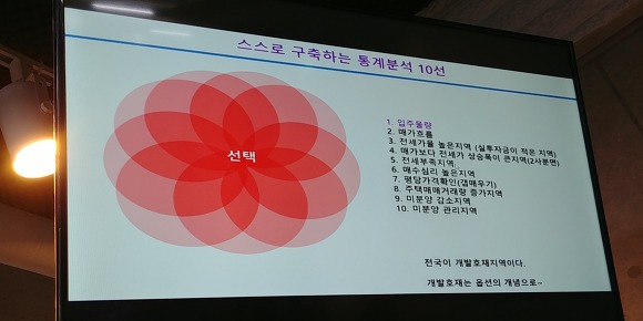 - 지역분석은 사전조사를 통해 개발계획, 시세 흐름 등을 파악하는 것이 중요하고, 스스로 구축하는 통계분석 10선을 통해 지역을 선정하는 방법에 대해 알려주셨습니다.