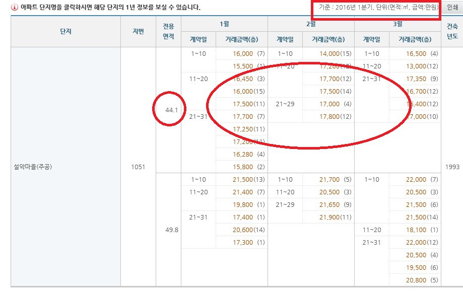 아래는 2016년도 실거래가