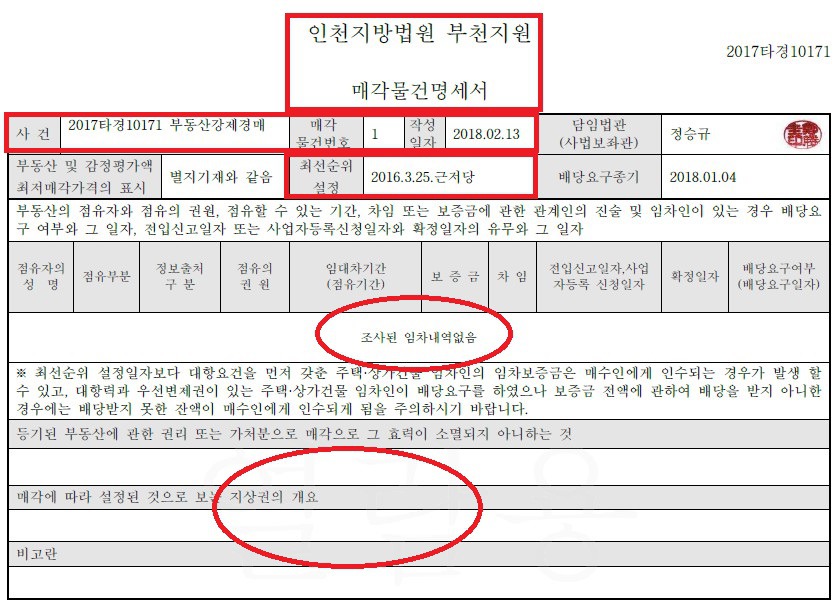 매각물건명세서 상에는 아무런 문제가 없다고 하고 있는거죠