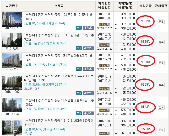 입찰가 산정시 기존의 낙찰사례를 검토합니다