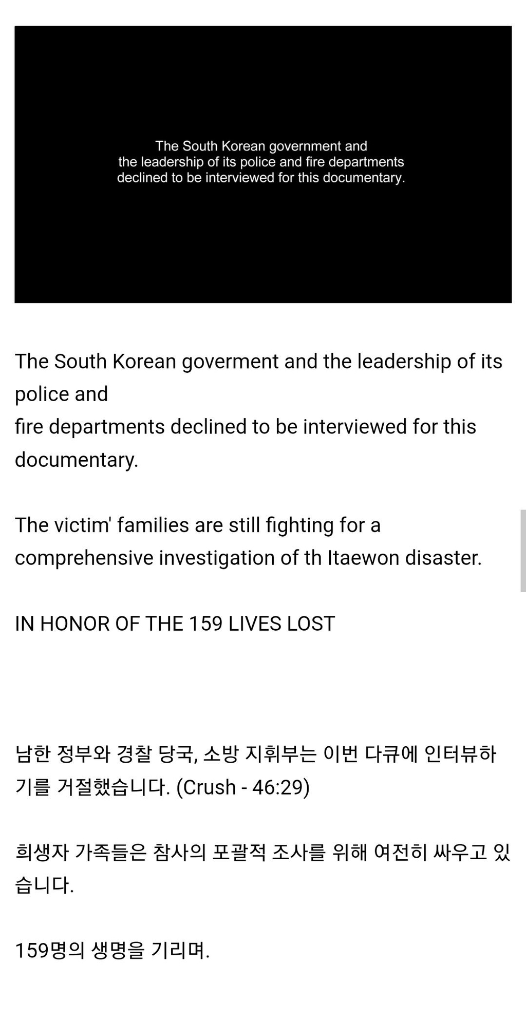 이태원 참사에 대한 다큐인데