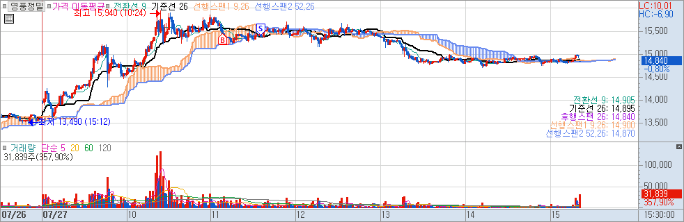 시총 1800억으로 조금 작은 회사이다 보니 호가 거래가 좀 비어 있습니다. 막 날아갈 차트라고 판단하여 들어갔는데 아무래도 거래금액이 적다 보니 크게 들어가지는 못하였습니다. 고수님들은 이런 종목들도 거래를 하시는지요. 이런 게 적은 거래로 쑥쑥 날아가는 종목들이 있다 보니 자꾸 미련이 생깁니다. ㅠㅠ 0.12% 수익