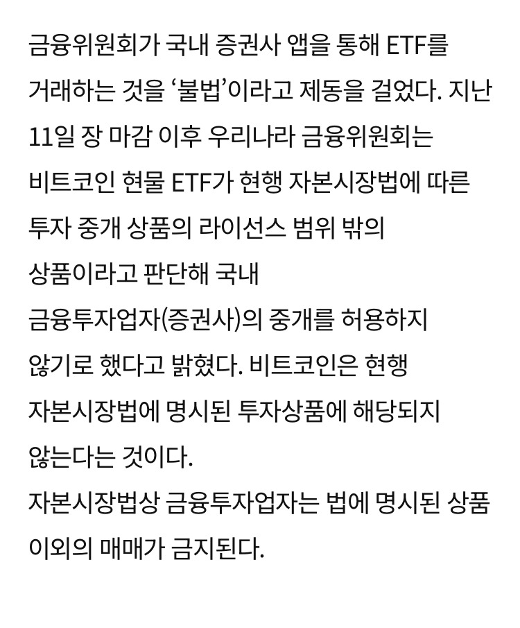 미국에서 코인 etf 허용되고 기관 들어온 게 1년이 다 되어가는데 한국은 뭐함?