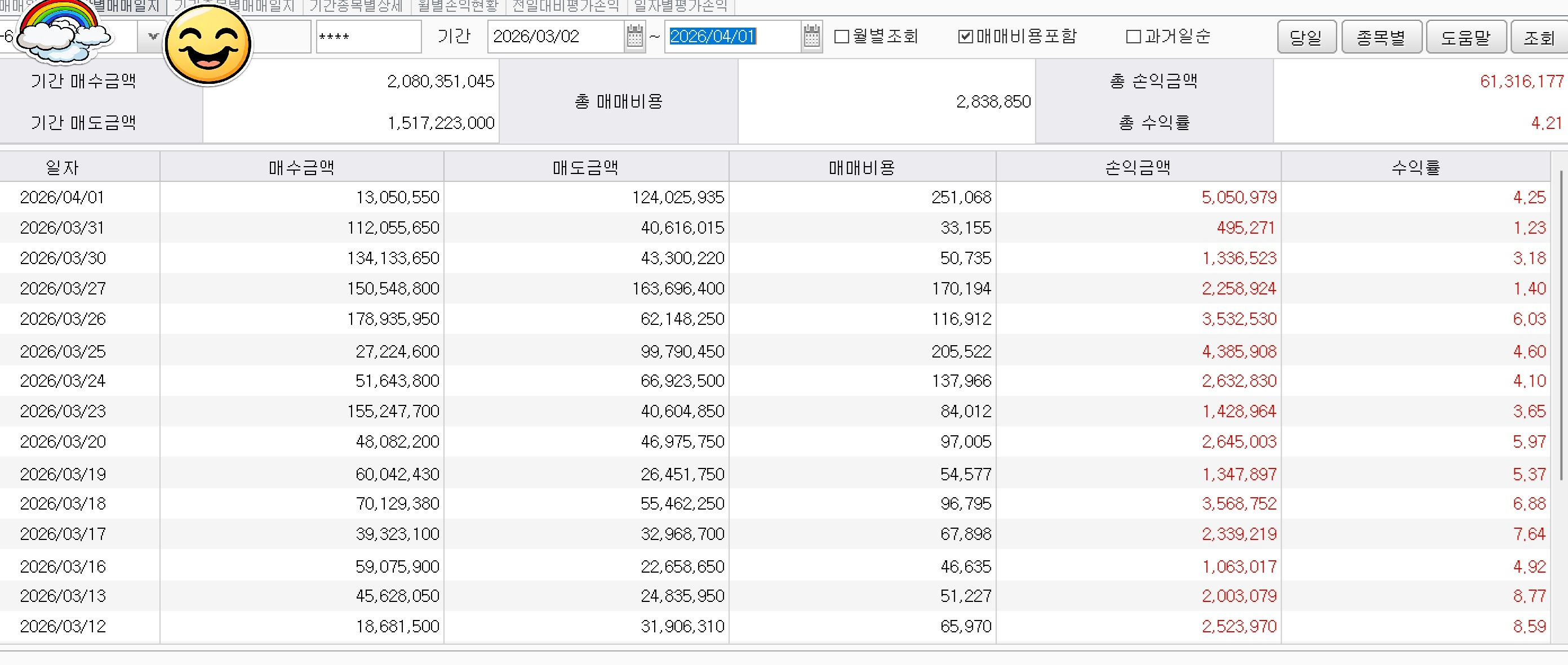 조방원 위주로 매수한것은 그때그때 수익 실현 하고 떨어지면 또 비중 실고 그랬네요.