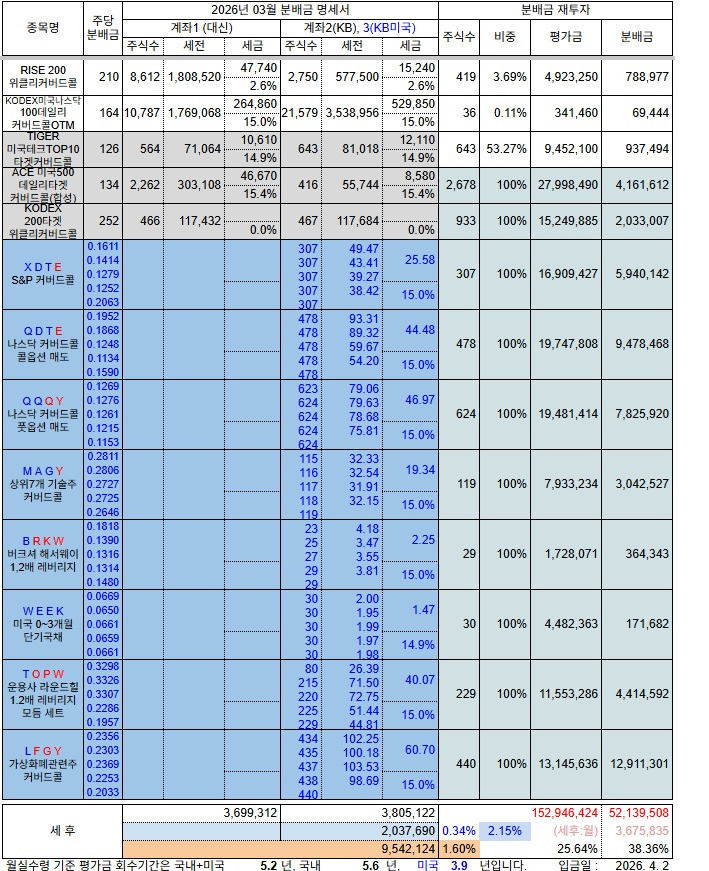 올해 분배금 재투자는 기존계획대로 미국장에 집중하겠지만,