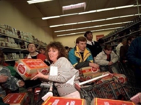 이 사진에서 볼 수 있는 것은 소비사회의 혼란스러움과 무질서함, 그리고 개인적 이기심의 극치라고 볼 수 있습니다.