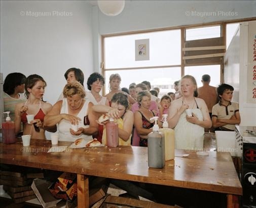 아래 사진은 마틴 파의 또 다른 사진 마지막 휴양지(The Last Resort)라는 사진입니다. 영국 국민들이 여름 바캉스 기간에 피서를 즐기는 모습을 포착한 겁니다. 우리로 치면 여름 해운대 해수욕장 인근 가게에서 먹을 것을 사기 위해서 줄 선 사람들의 모습이 되겠네요.