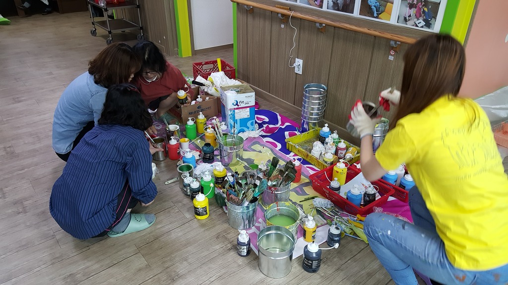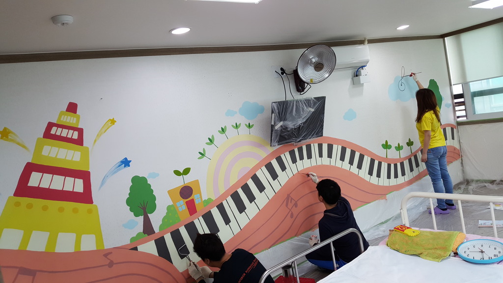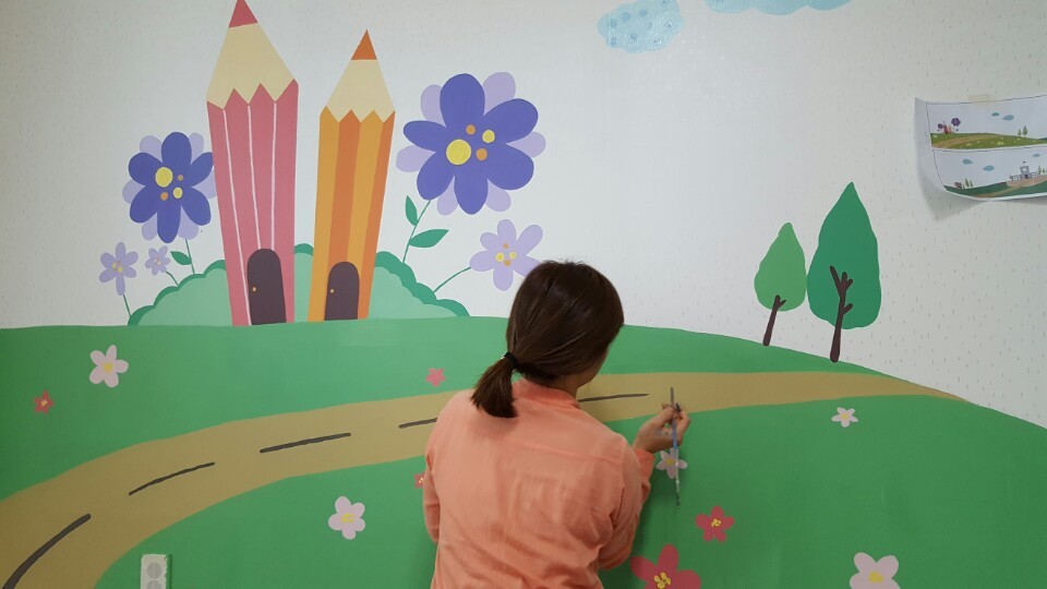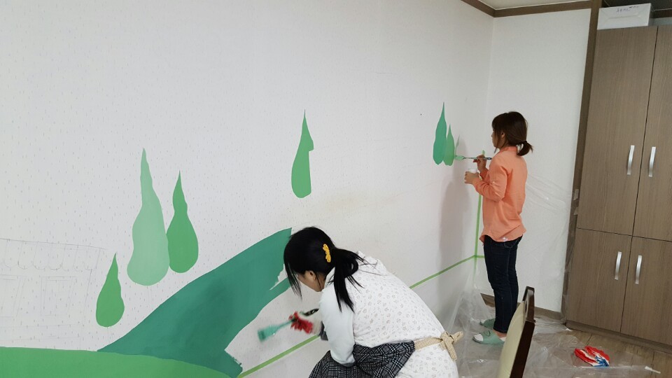 보양 후에 더 빠르게 밑그림을 그리고 본격적으로 벽화그리기 활동을 시작합니다:)
