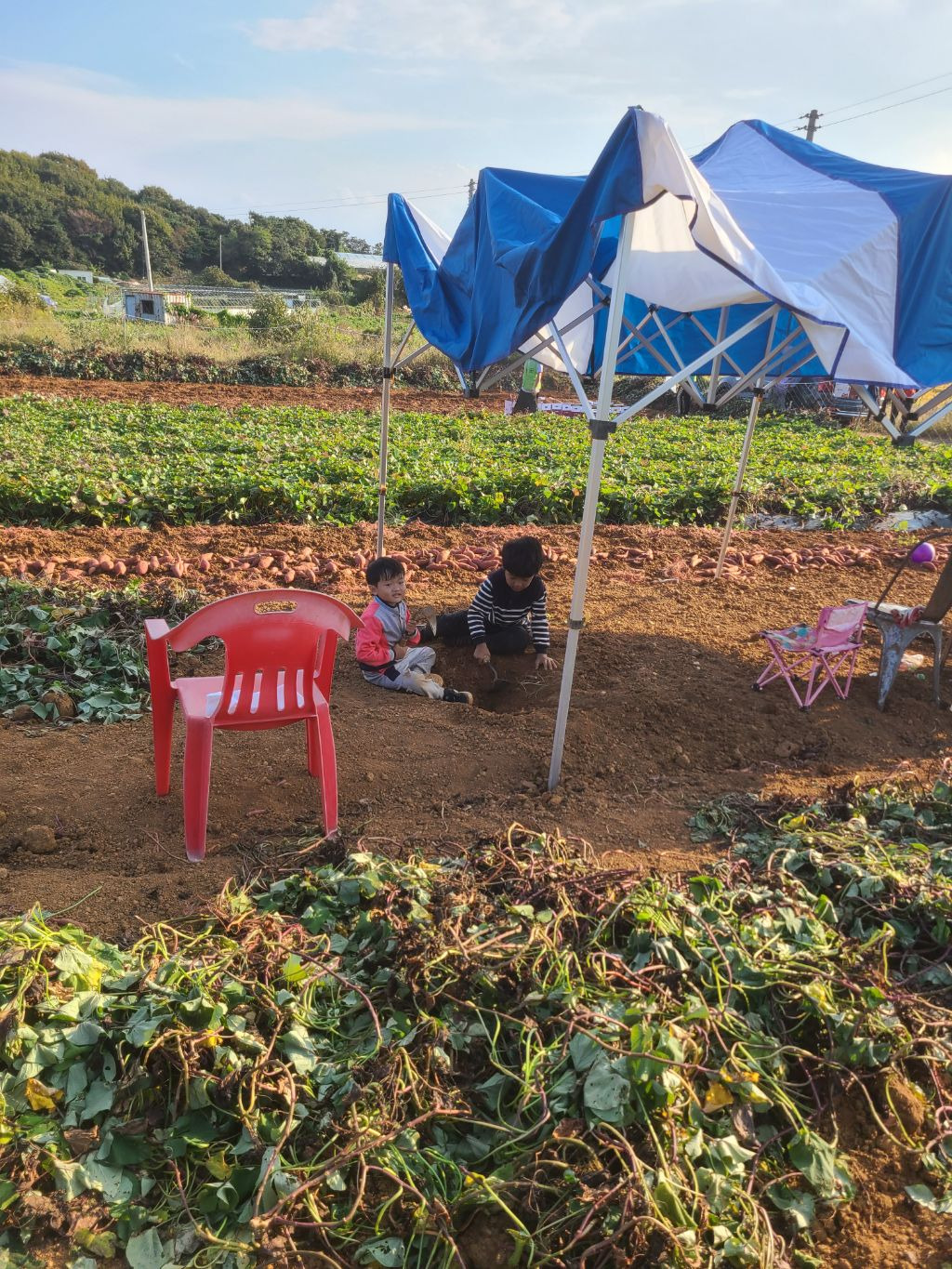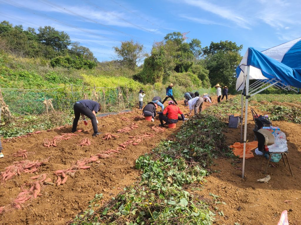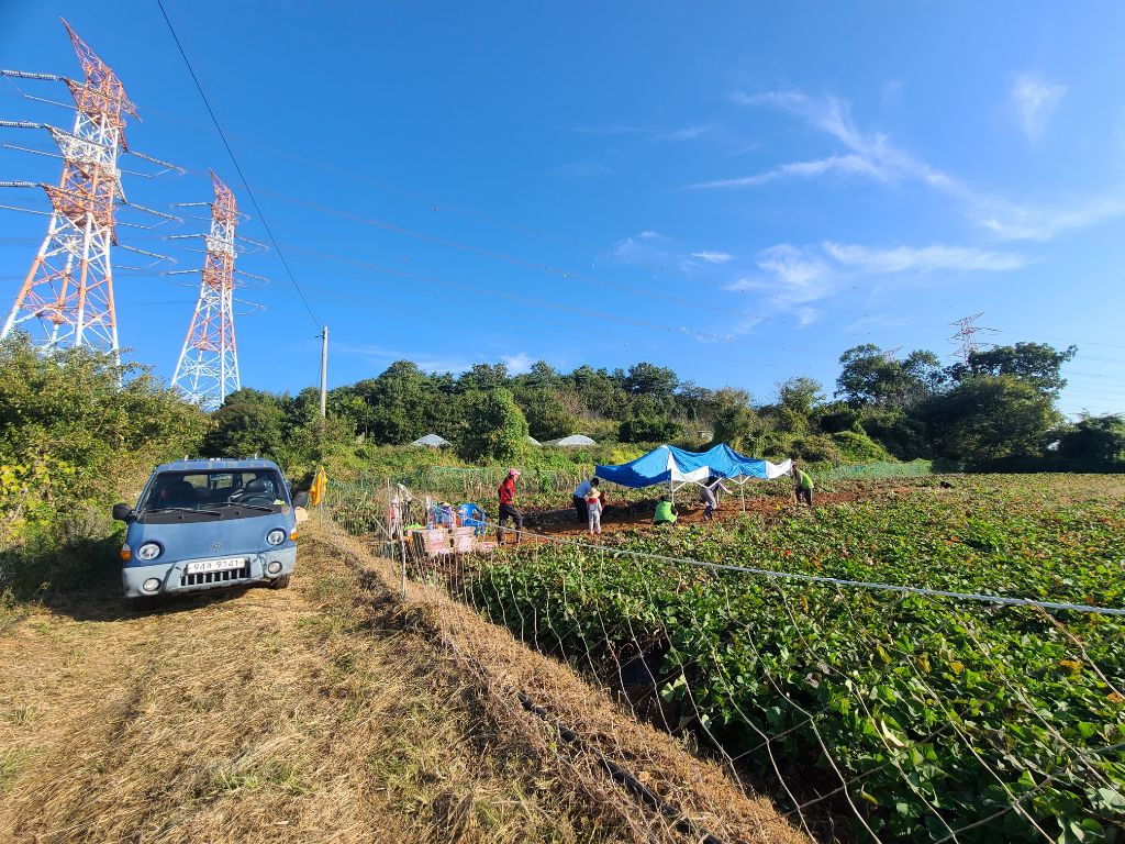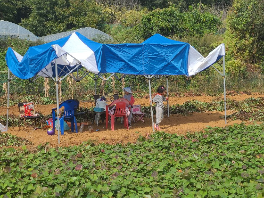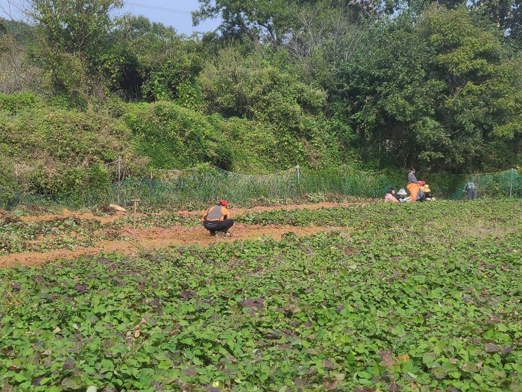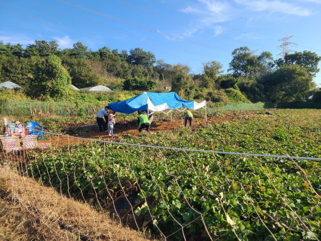 점심을 먹고..참 점심도 초딩동창분이 사주셨습니다!! 진심 감사합니다!!아이들과도 잘 놀아주시고..태권도 심판만 아니면...정말 제가 친하게 지내고 싶었을텐데...아쉬웠습니다...후후...그리고 다시 작업장으로 향했습니다...오후에는 하던 호구질을 더 해서 마무리하고 본격적으로 고구마 캐는 작업에 들어갔습니다. 몸은 점점 약때문에 몽롱하고 목소리는 안나오고 죽을 맛이였지만...대표라는 책임감...(하..멋져)하나로 버티며...이겨냈습니다...!!!