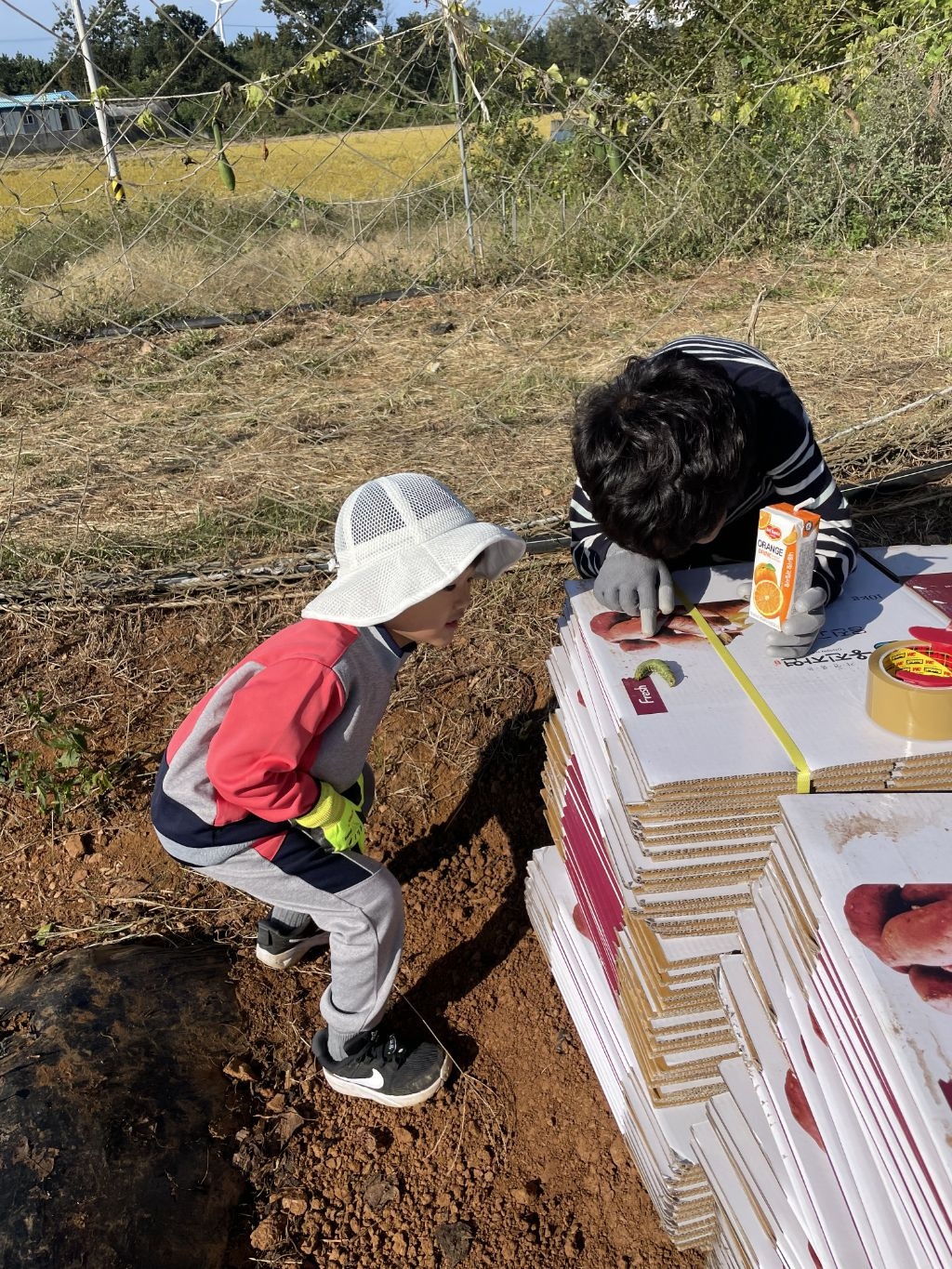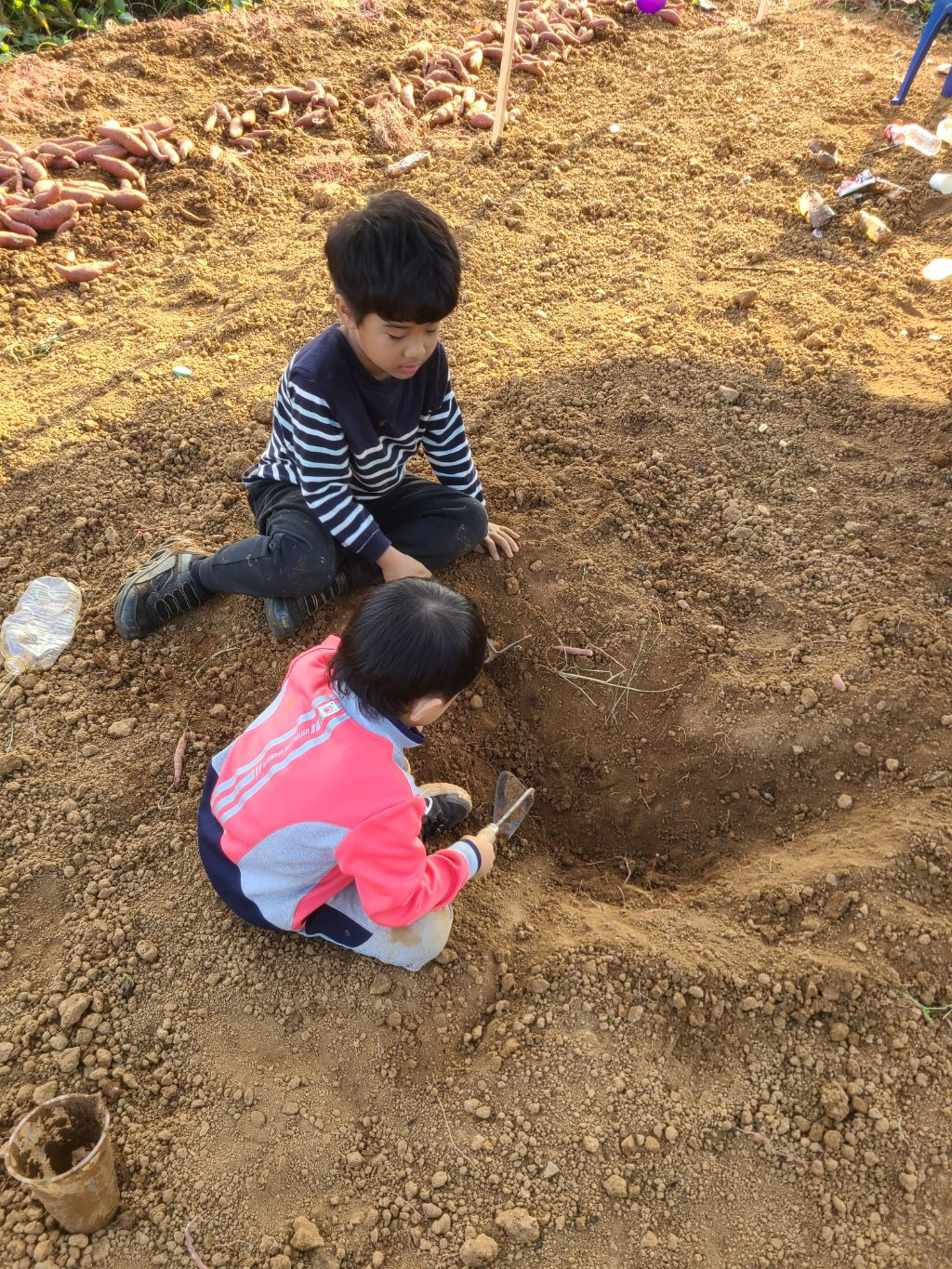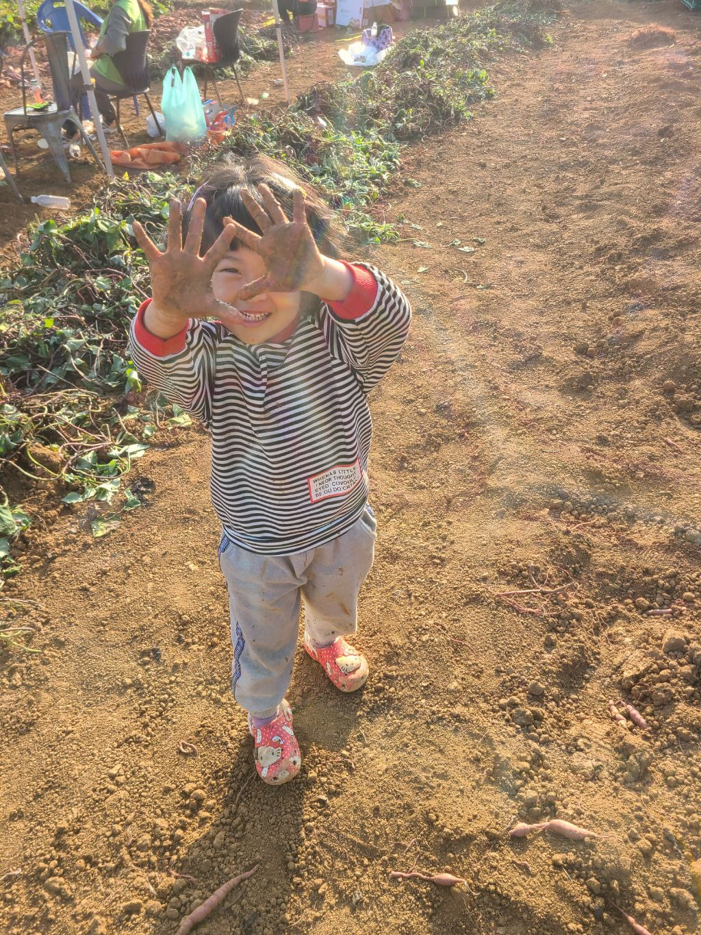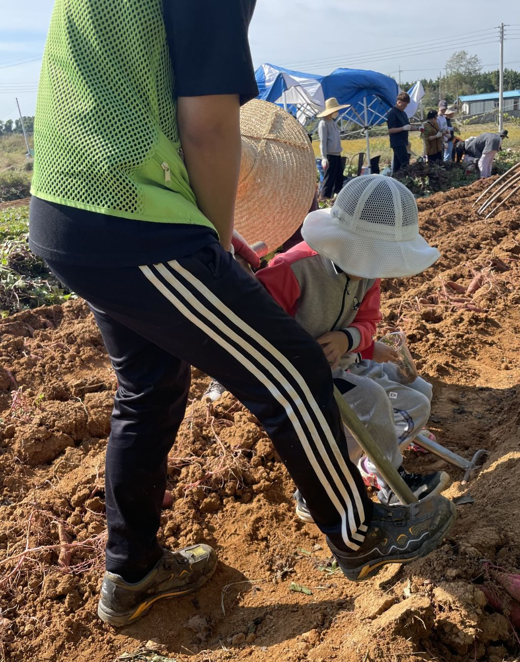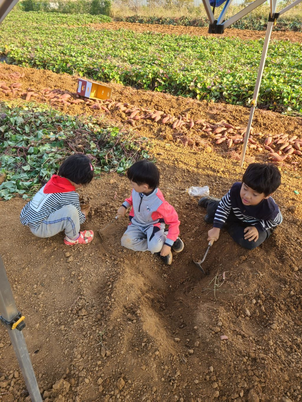 점심을 먹고..참 점심도 초딩동창분이 사주셨습니다!! 진심 감사합니다!!아이들과도 잘 놀아주시고..태권도 심판만 아니면...정말 제가 친하게 지내고 싶었을텐데...아쉬웠습니다...후후...그리고 다시 작업장으로 향했습니다...오후에는 하던 호구질을 더 해서 마무리하고 본격적으로 고구마 캐는 작업에 들어갔습니다. 몸은 점점 약때문에 몽롱하고 목소리는 안나오고 죽을 맛이였지만...대표라는 책임감...(하..멋져)하나로 버티며...이겨냈습니다...!!!