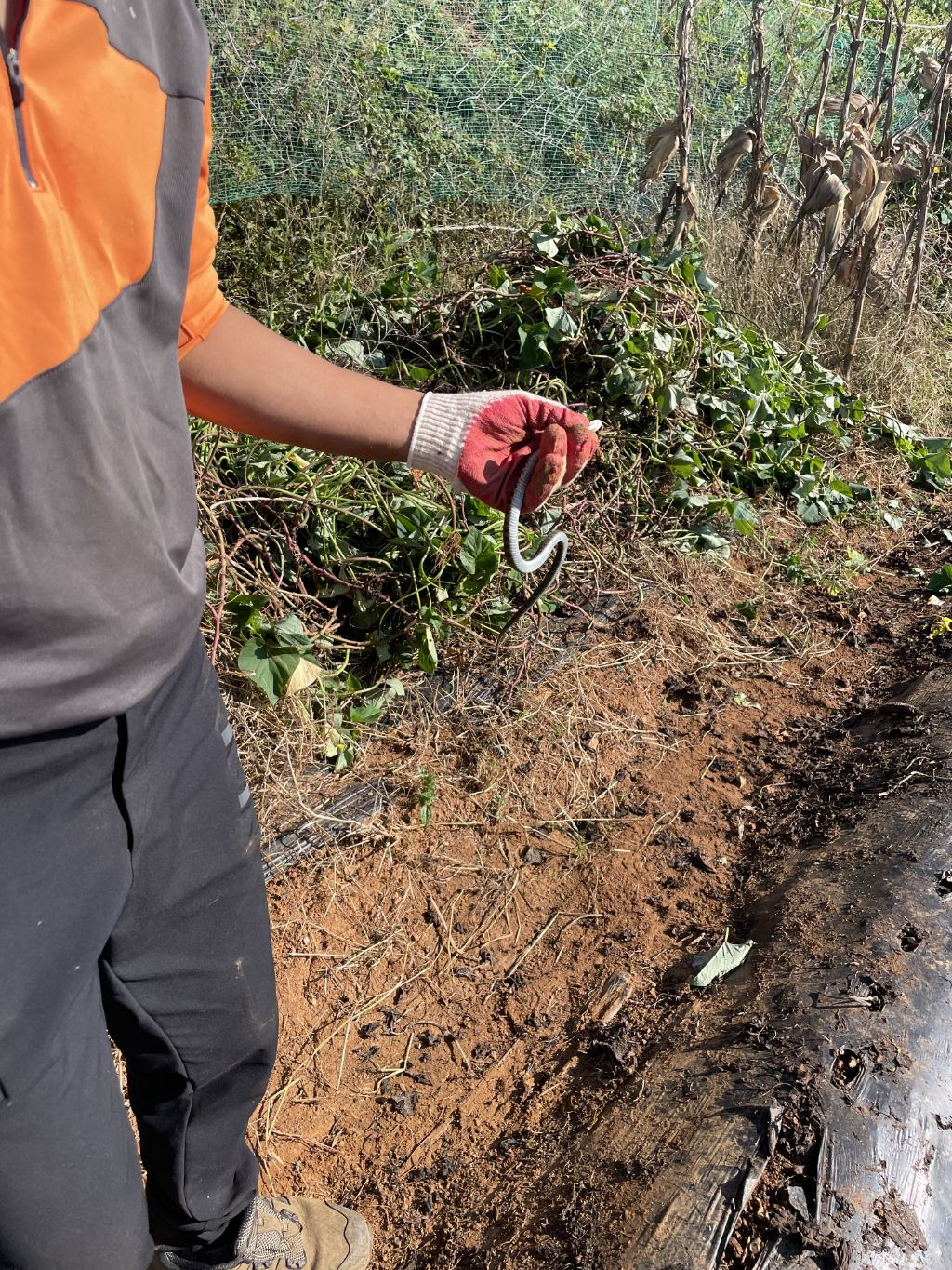어찌저찌 도착하고 인사하고 고구마 순 줄기 자르는 일을 하고 그룹홈이 도착했다하여 안내해주고 다시 순자르고 비닐벗겨내고 호구질을 시작하였고 도마뱀도보고 뱀도보고 이번엔 특이하게 작은 육지게 녀석을 두마리나 발견했습니다. 후후 오래살고 볼 일입니다.