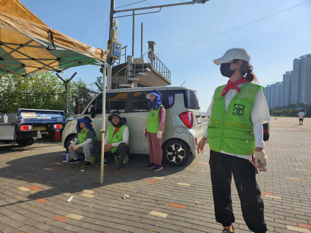 오후에 해가 내리쬐니 그늘을 찾아 앉은 울 봉사자님들