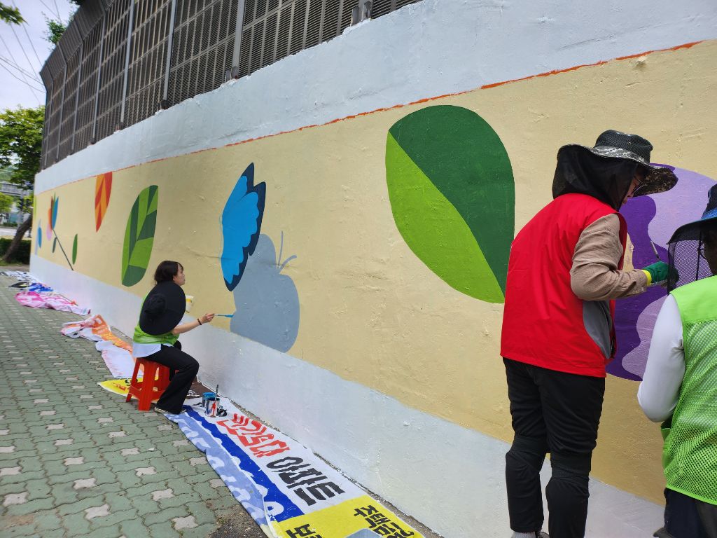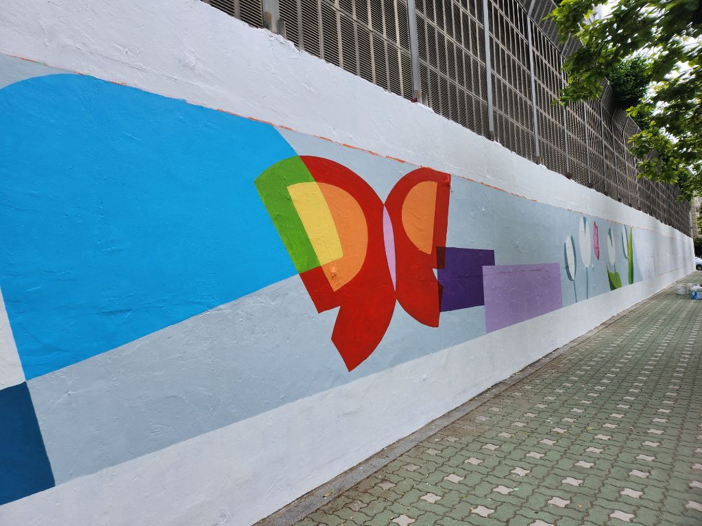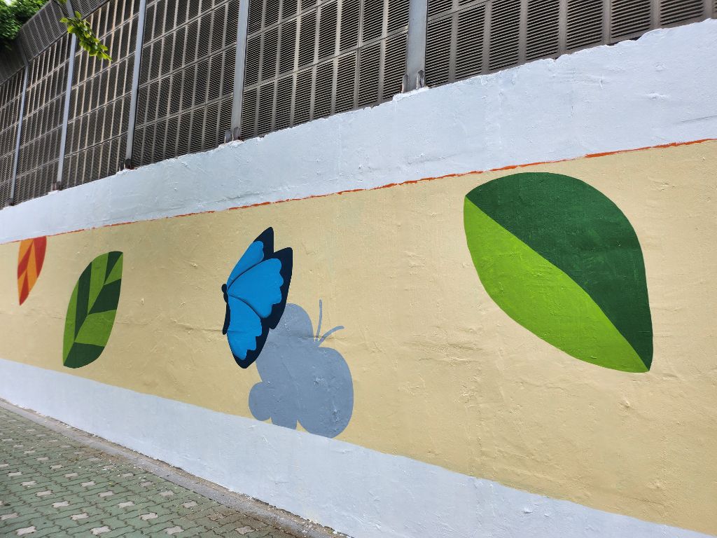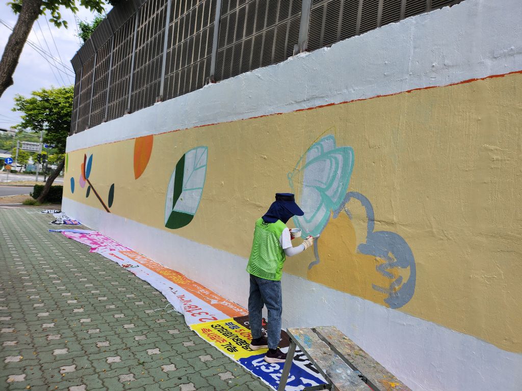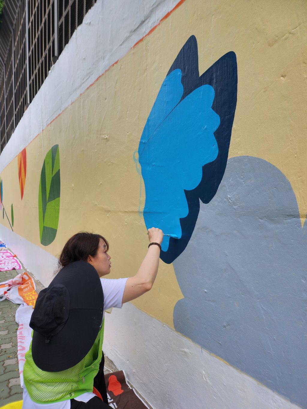 나비공원에서 봤을때 선명하게 보이게 색을 써달라는 요청이있어서 다른벽보다는 색을쨍하게 쓴편인데