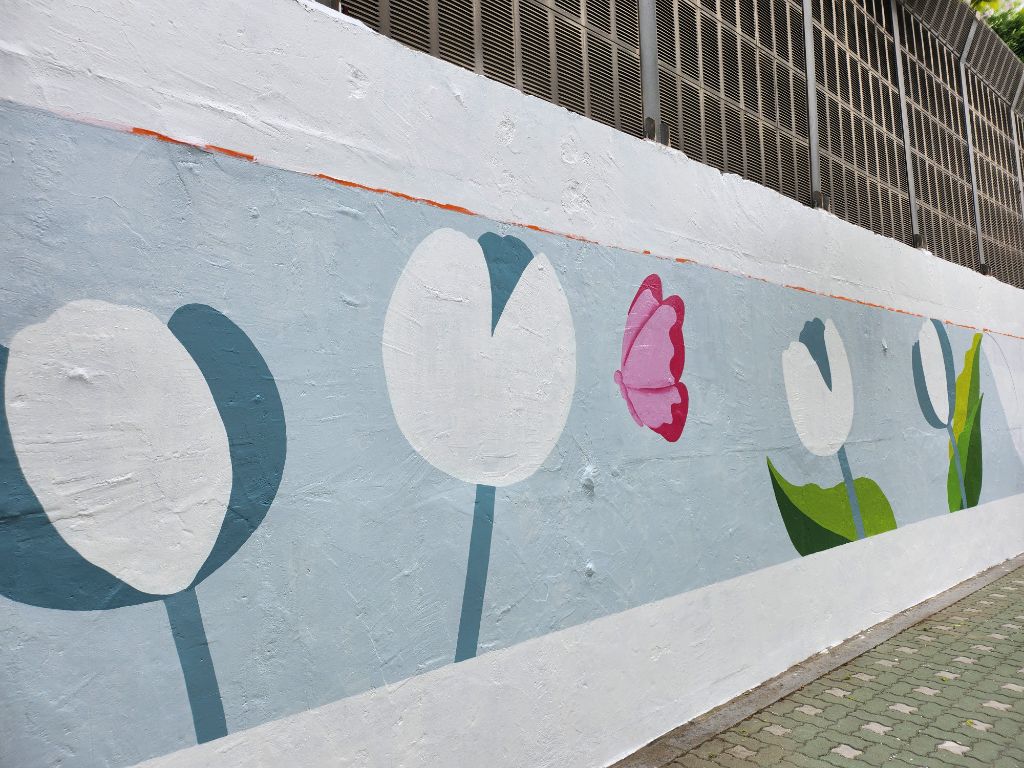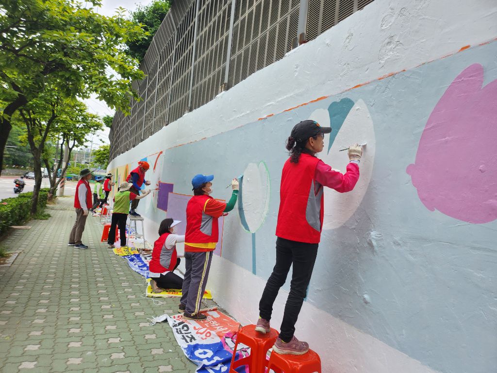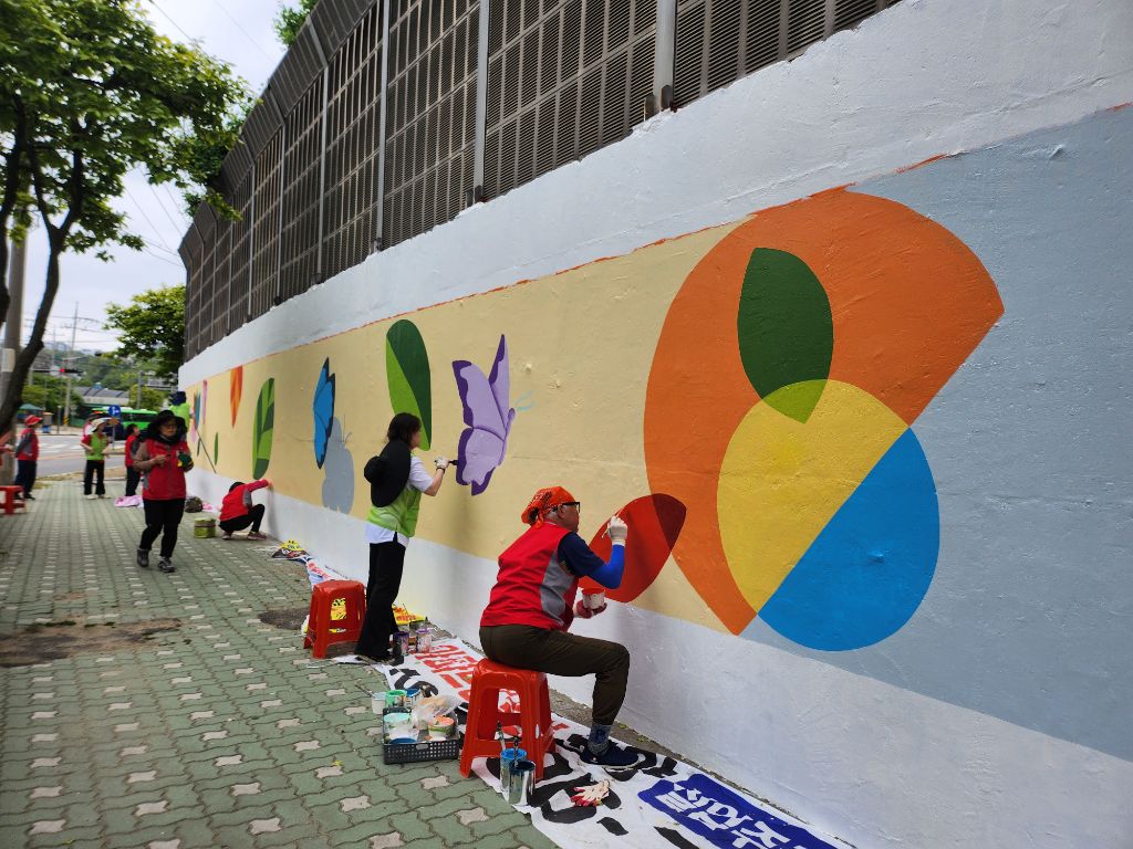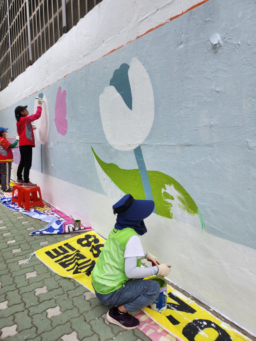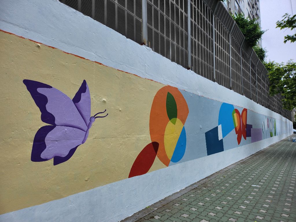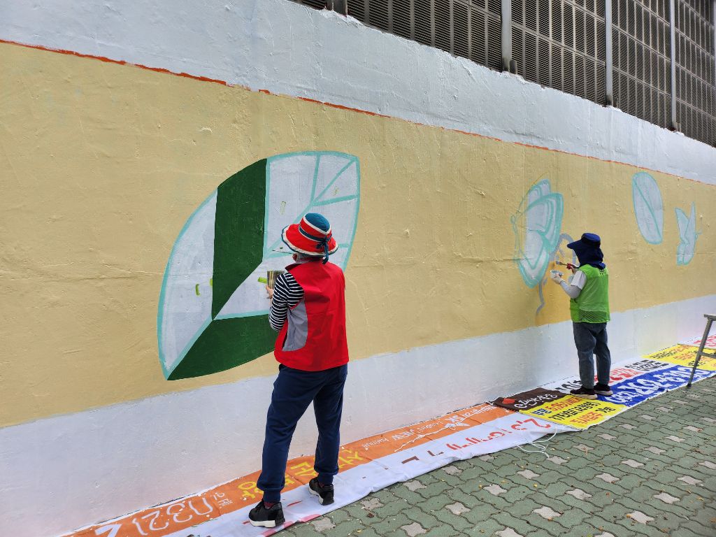 나비공원에서 봤을때 선명하게 보이게 색을 써달라는 요청이있어서 다른벽보다는 색을쨍하게 쓴편인데
