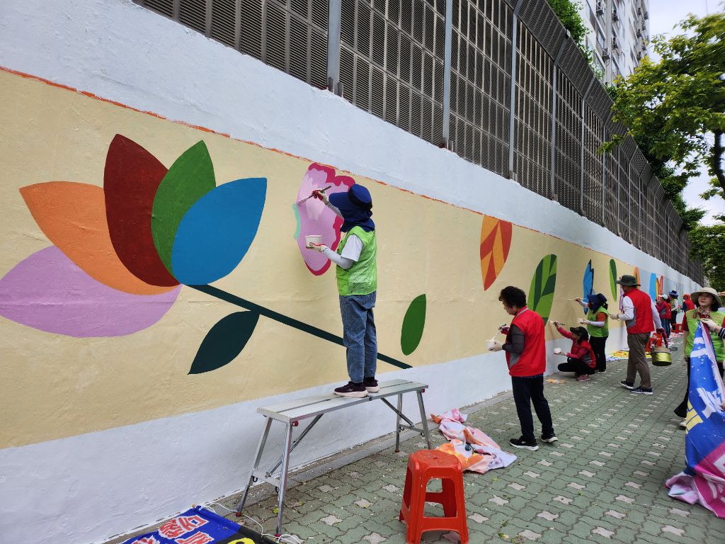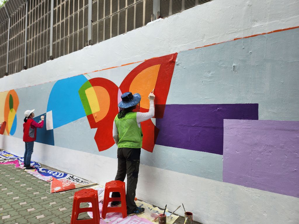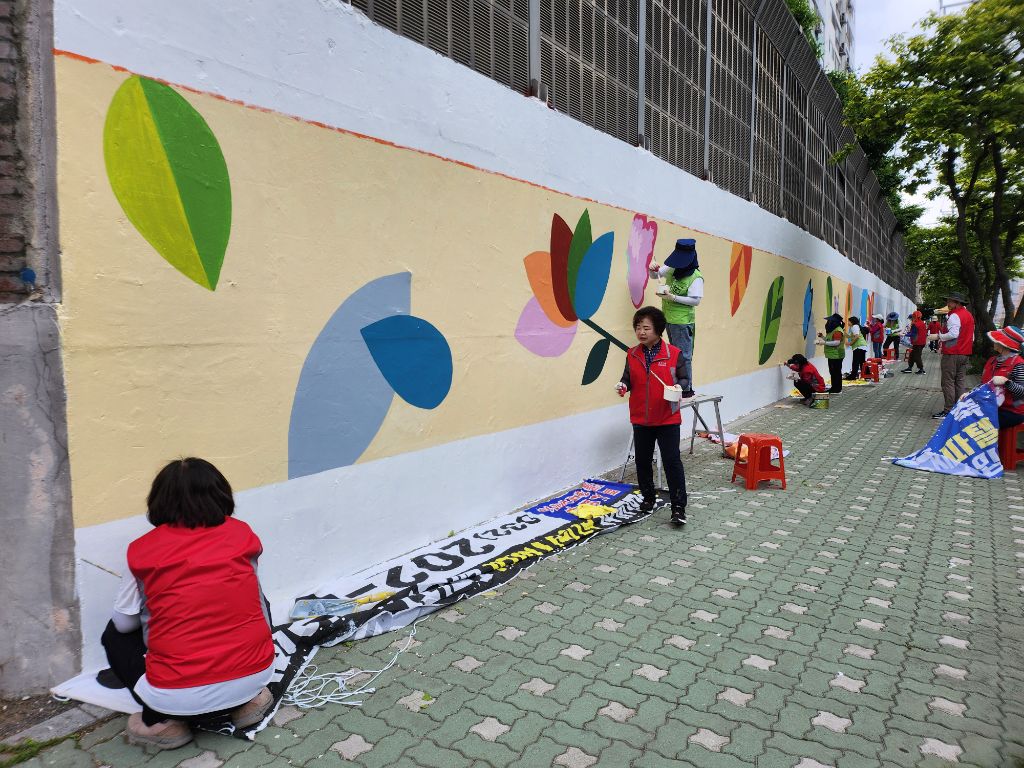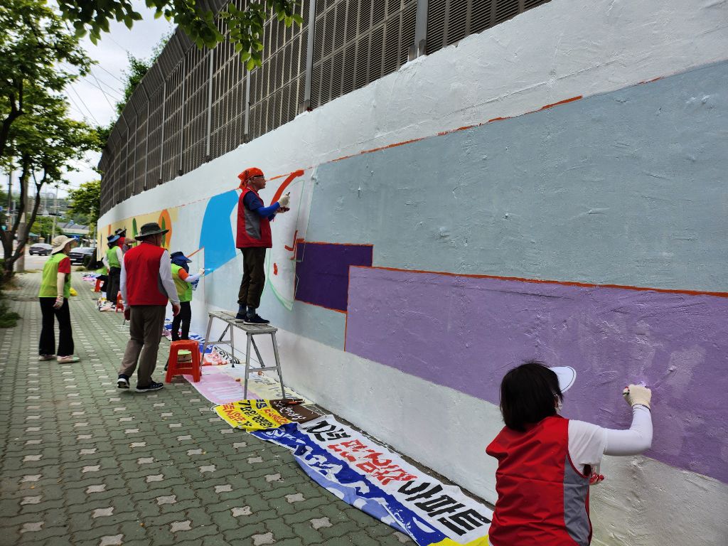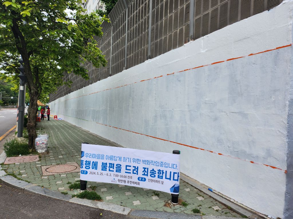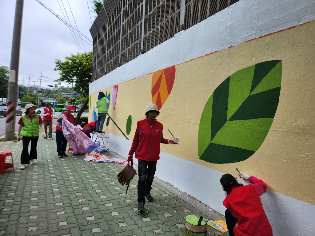 나비공원에서 봤을때 선명하게 보이게 색을 써달라는 요청이있어서 다른벽보다는 색을쨍하게 쓴편인데