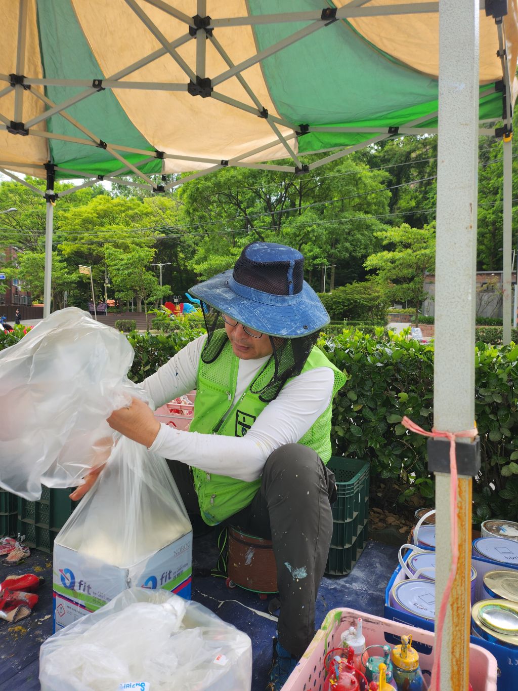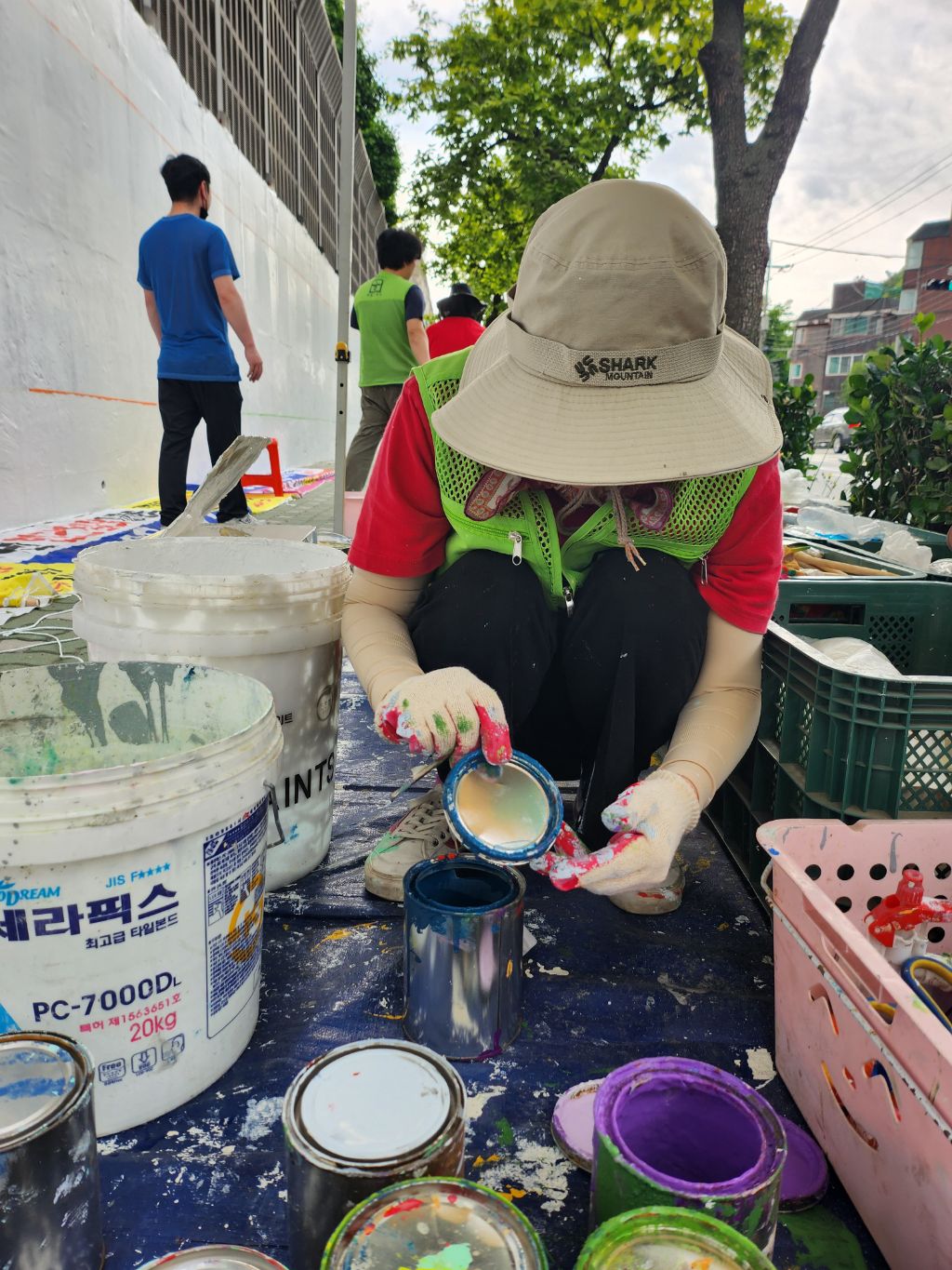 폐기용 페인트 뒤집는 바람에 치우느라 고생해준