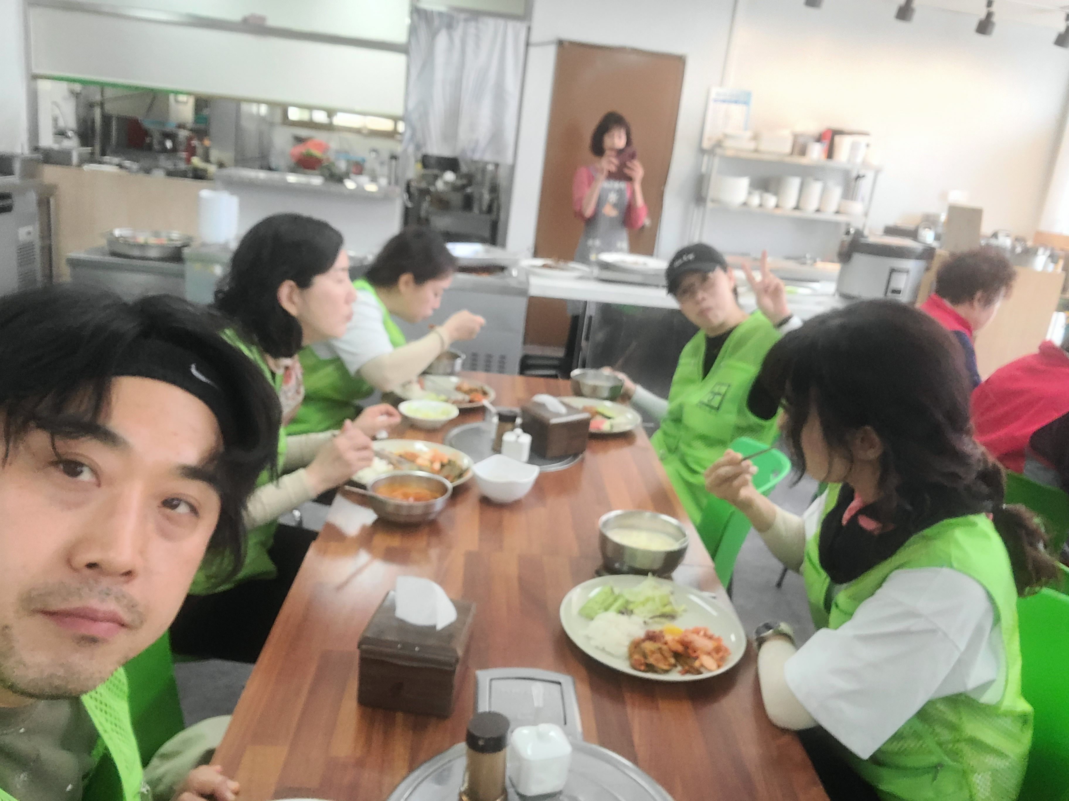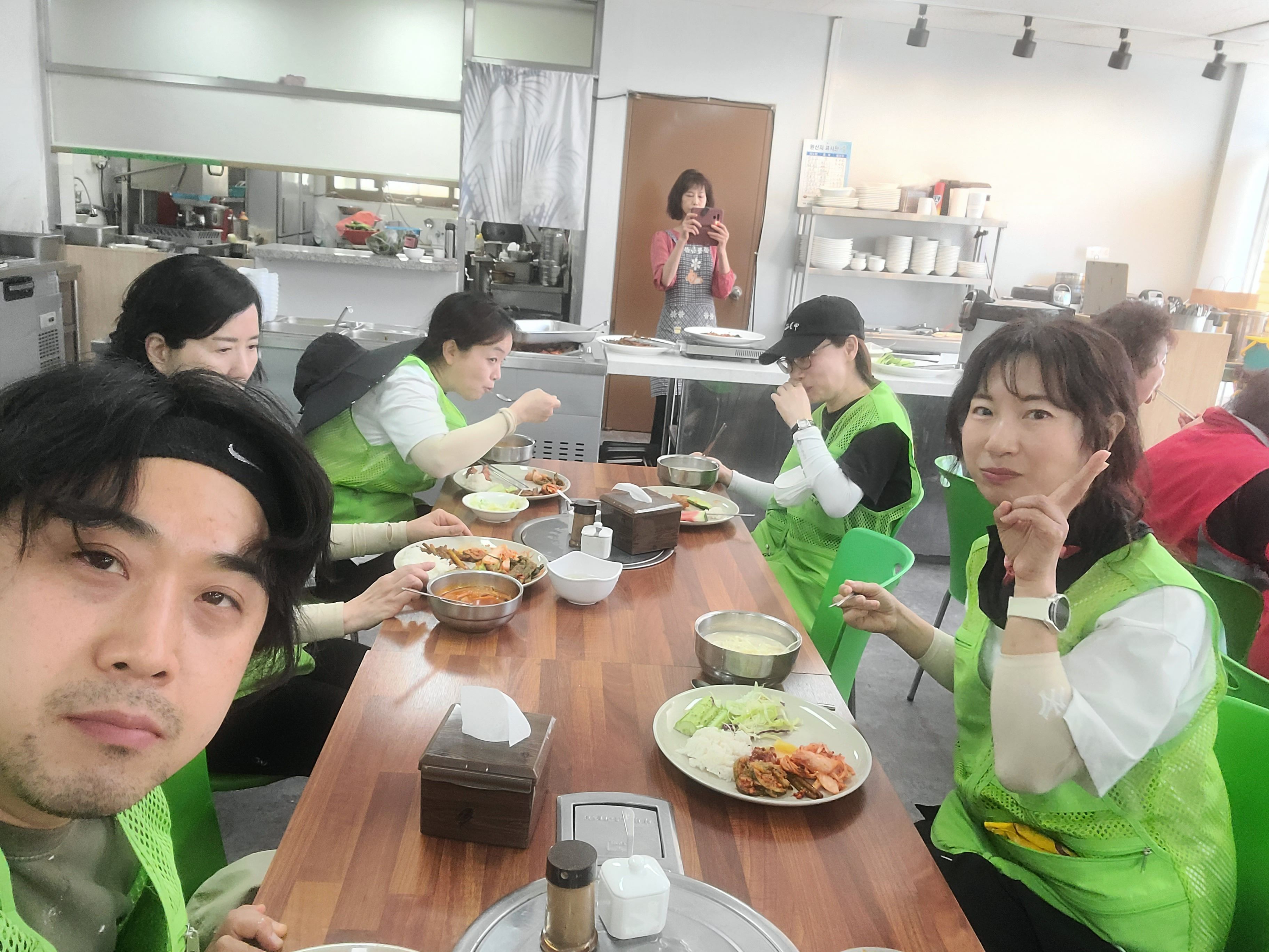 밥먹는 사진이 빠졌네요. 플러스원님과 교대로 브이 중인 빵쥬님입니다. 두분다 열심히 하는모습 아주 보기 좋았습니다!!