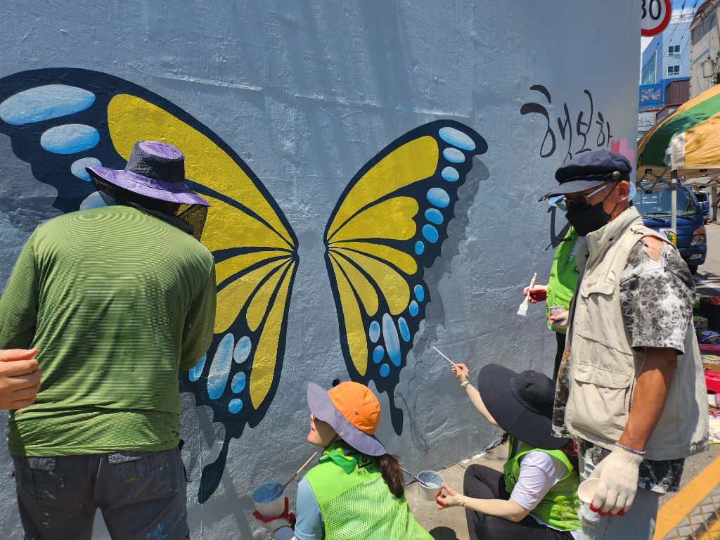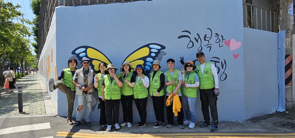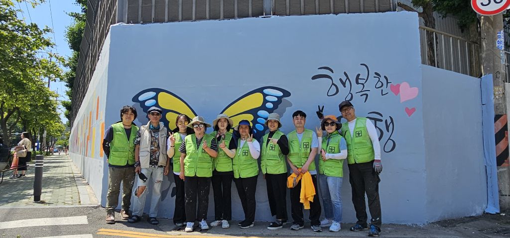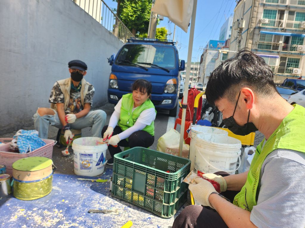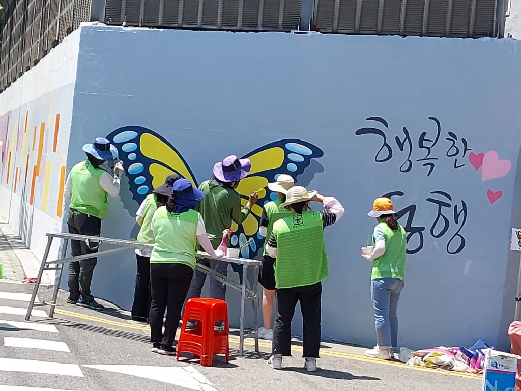 6/1 일 희망그리기 님들과 주민자치위원회, 통장자율회 님들의 빛이 나는 속도 덕분에 길고 긴 벽의 작업이 후루룩!!!!! 끝난듯한 착각이 들 정도로 빨랐습니다. 물론 많은 분들의 노력과 피땀 눈물이 들어갔습죠