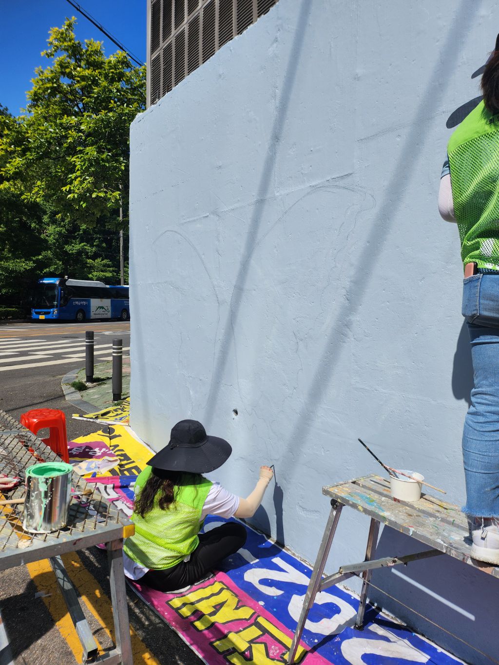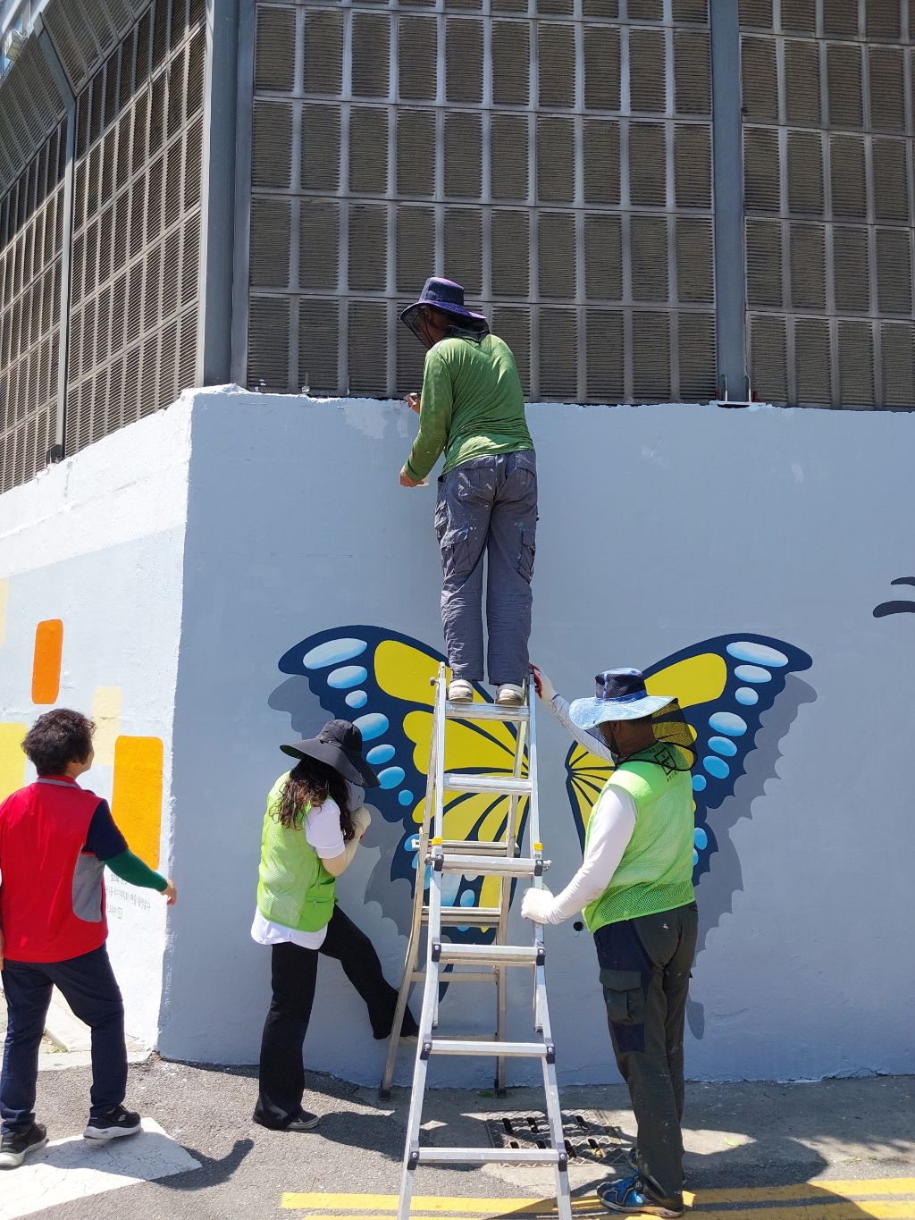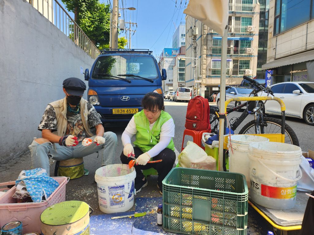 6/1 일 희망그리기 님들과 주민자치위원회, 통장자율회 님들의 빛이 나는 속도 덕분에 길고 긴 벽의 작업이 후루룩!!!!! 끝난듯한 착각이 들 정도로 빨랐습니다. 물론 많은 분들의 노력과 피땀 눈물이 들어갔습죠