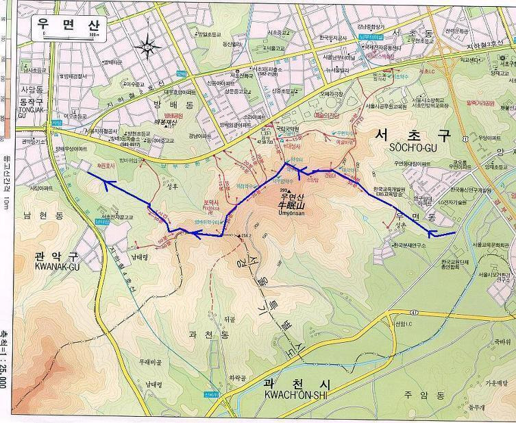 어디를: 양재시민의 숲- 소망탑(293m)- 우면산 둘레길- 사당역