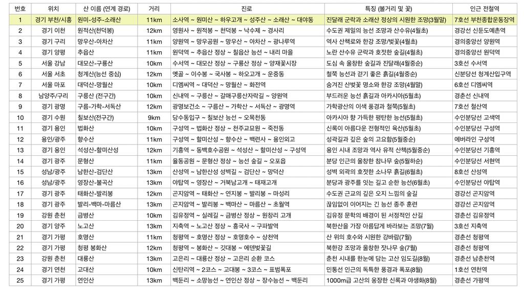2. 진로(10.8Km): 부천운동장역-원미산-성주산-소래산-서해선 시흥대야역
