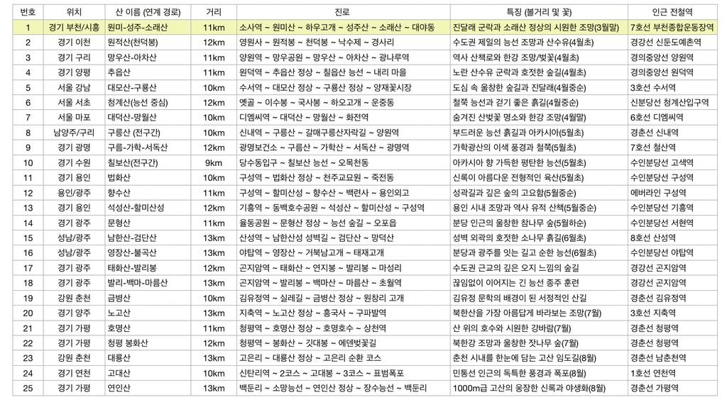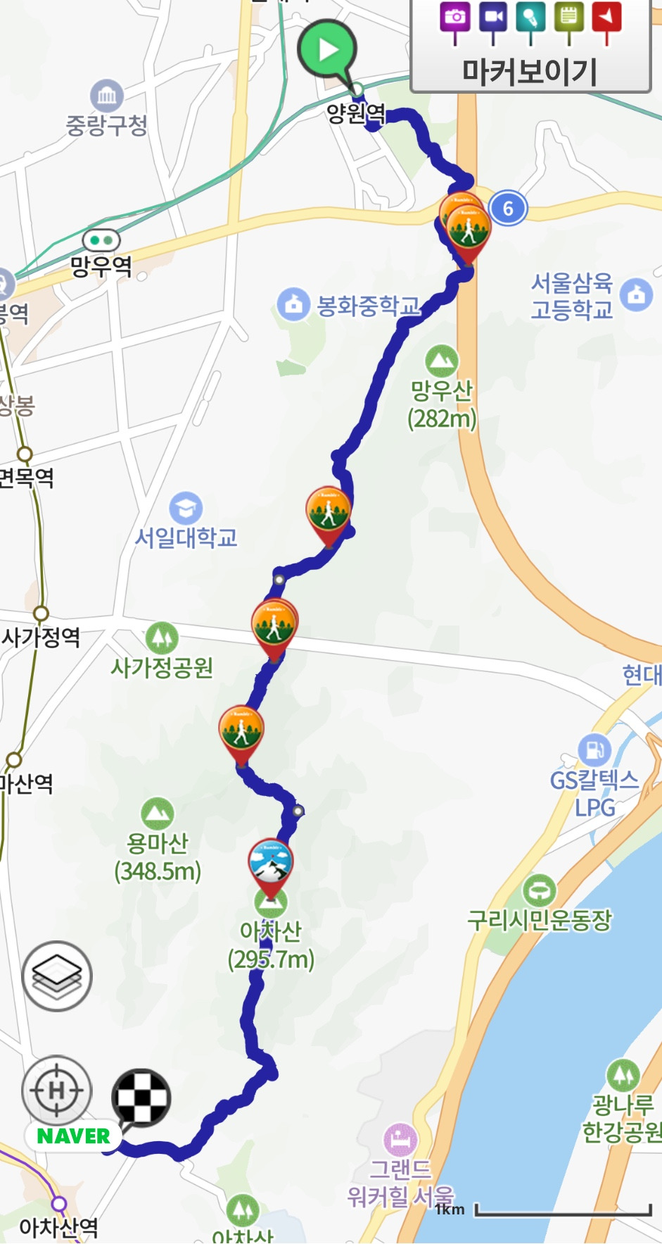 2. 진로(10Km): 양원역 2번출구-중랑전망대-용마산스카이워크-아차산-아차산역