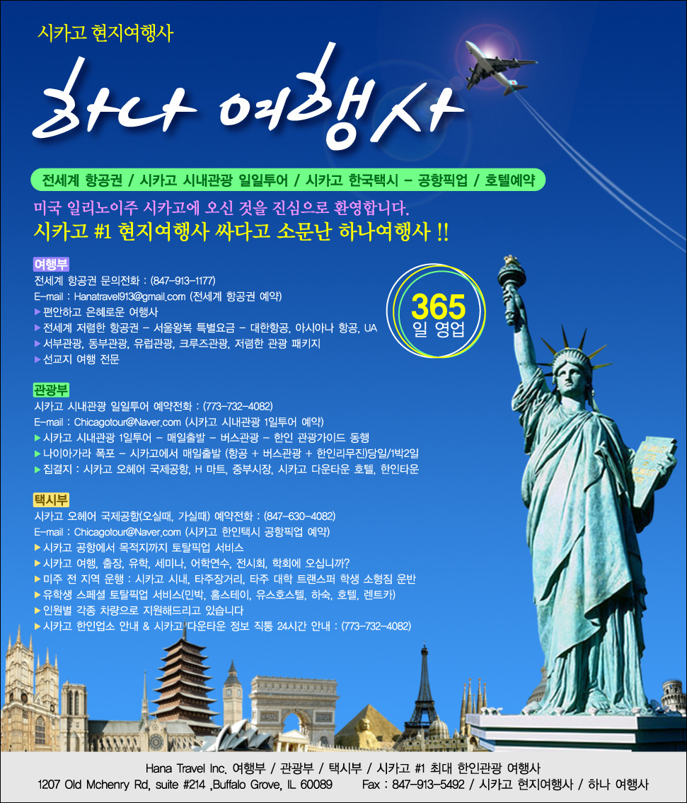 24시간365일 시카고 한인투어그룹 : 1-847-630-4082