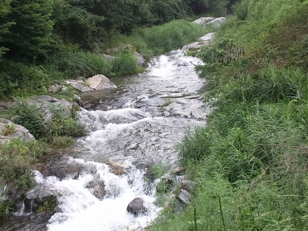 땅앞으로 계곡물이 흐르고 있어요
