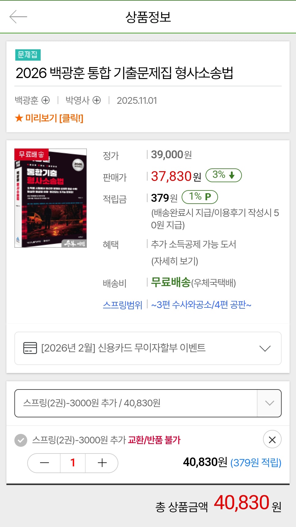 백광훈 형사소송법 기본서+기출 판매합니다 작성자크큭큭|작성시간26.02.15|조회수65 목록 댓글 2 글자크기 작게가 글자크기 크게가 백광훈 형소법 기본서 + 기출(분철)일괄 5만에 판매합니다(택포)필기도 없이 몇번 펼쳐보기만 한 새책이에요관심 있으시면 채팅 혹은 댓글 남겨주세요 다음검색 현재 게시글 추가 기능 열기 북마크 신고 센터로 신고 댓글 댓글 2 댓글쓰기 답글쓰기 댓글 리스트 해당 댓글은 작성자와 운영진만 볼 수 있습니다. 해당 댓글은 작성자와 운영진만 볼 수 있습니다. 댓글 전체보기