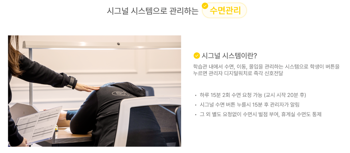 교시 시간에는 학습에 집중해야 한다는 점과 수면은 정해진 시간과 장소에서만