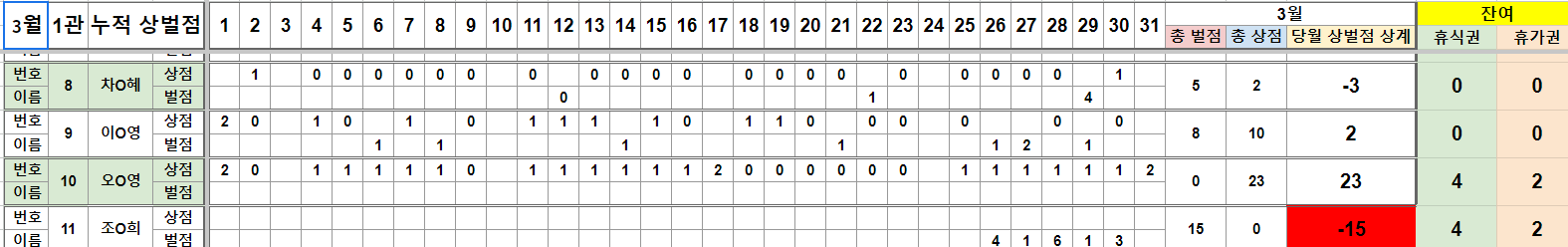 *휴식/휴가권 제도 : 휴식권, 휴가권 사용으로 학습 컨디션을 관리하여 공부흐름이 깨지지 않도록 규정을 정하고 관리합니다.