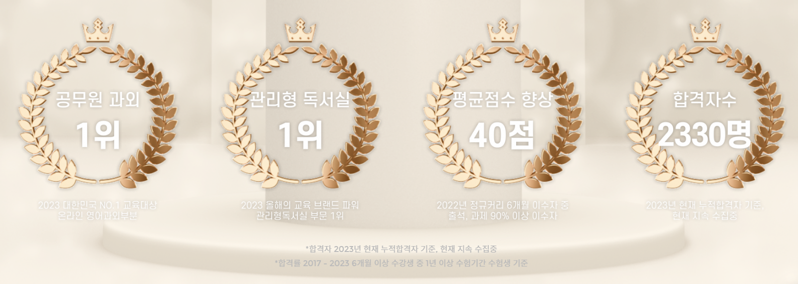 관리형독서실 1위 - 2023 브랜드파워 1위 관리형 독서실 부분 대상