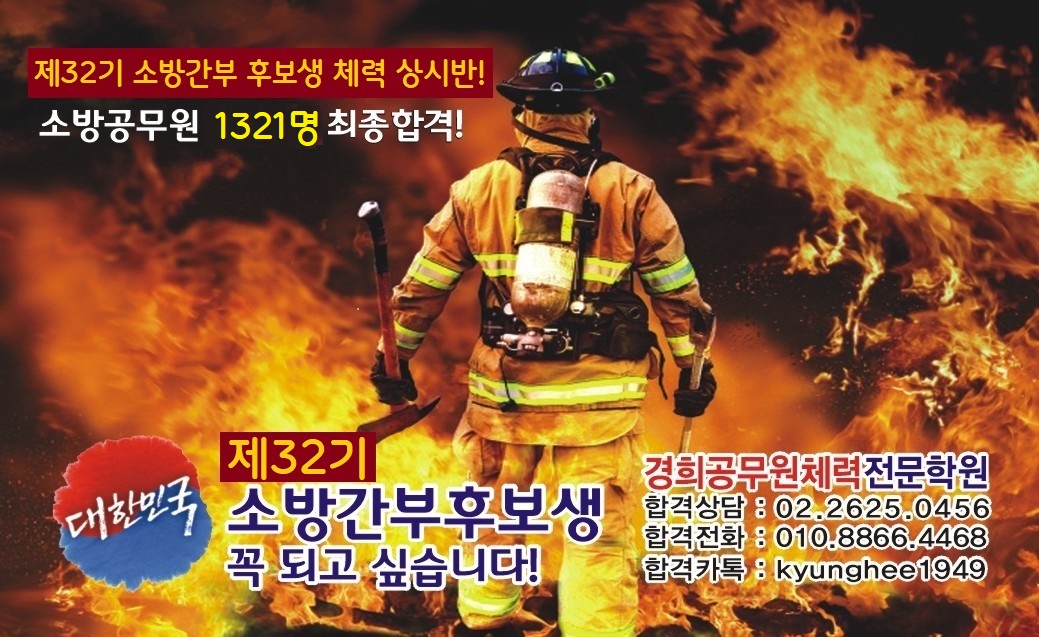 ■ 제32기 소방간부후보생 체력 상시반 모집! 수업 진행중! ◇ 체력 60점 목표로 준비 하세요.■ 단일학원 소방 1321명 최종합격!