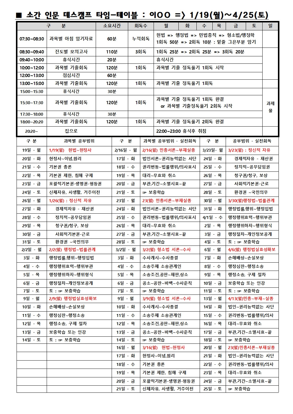 소방간부초시생 과목별 진도별 공부범위 및 인문/자연 개인별 스터디플랜 작성자소간잡고|작성시간26.01.25|조회수84 목록 댓글 0 글자크기 작게가 글자크기 크게가 다음검색 현재 게시글 추가 기능 열기 북마크 공유하기 신고 센터로 신고 댓글 댓글 0 댓글쓰기 답글쓰기 댓글 리스트
