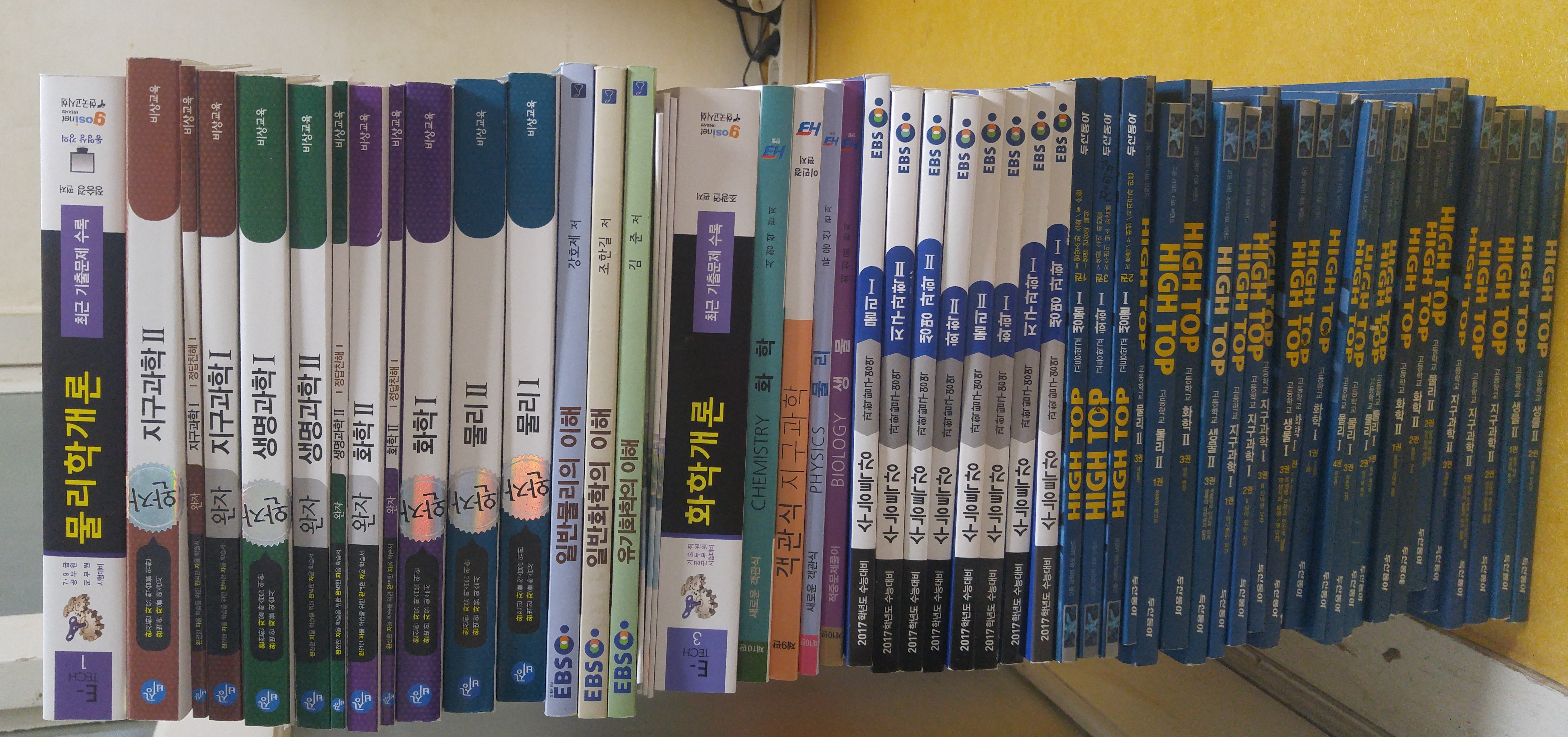 자연과학개론 : EBS 수능특강 물화생지 1,2 ( 5회독), 하이탑 7차교육과정 (2회독), 완자 (3회독)
