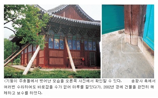 쓰러져 가는 집에 그대로 살려면 무너질 염려가 있음과 같이