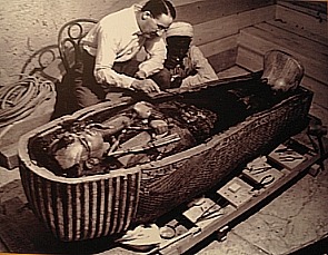 파라오 무덤에서 영국인 고고학자 하워드카터가 최초로 관을 여는 장면.