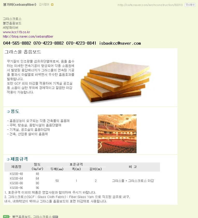 불연방음보드입니다 그라스울크린매트 불연단열재