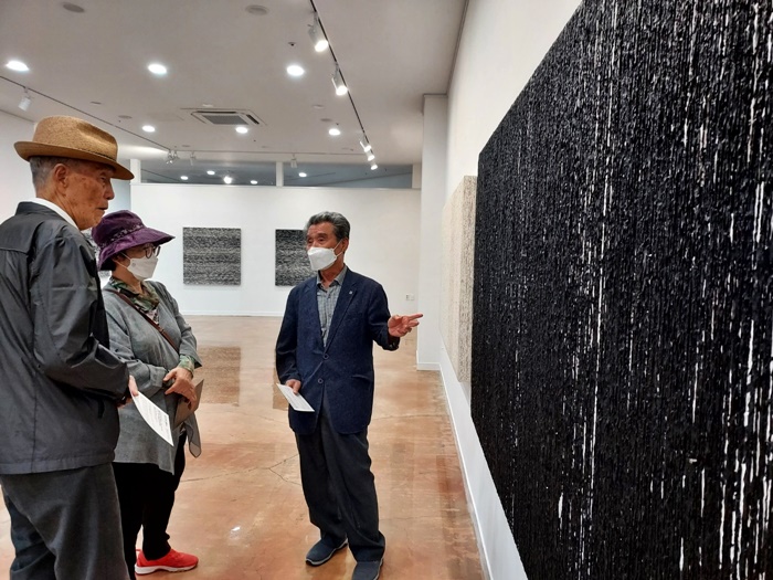 아래 위층을 오르내리며 작품을 세세히 살피고