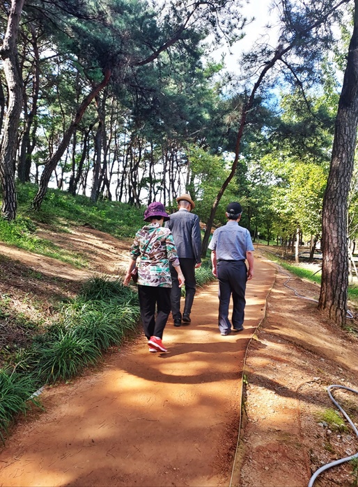 이어서 가까운 도청앞 천년숲에 있는 황토 숲길을 함께 걸었다.