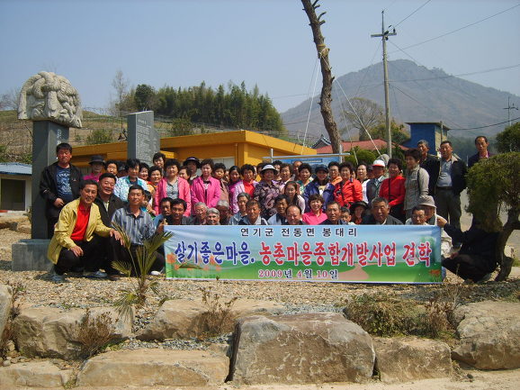 2009년 4월 10일 전동면 봉대리 주민 64명이 2008년 참 살기좋은 마을 대상을 차지한 전남 장흥군 안양면 기산마을과 2007년 농촌마을 종합개발사업 최우수상을 차지한 전남 장흥군 안양면 수문권역을 견학 하였습니다.