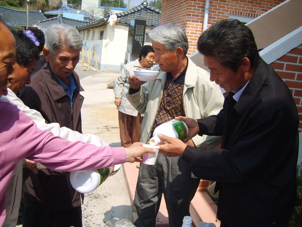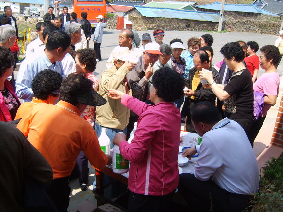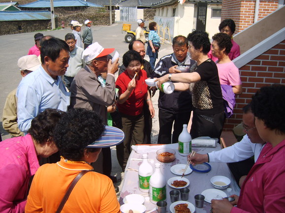 백광철 리장님 사모님이 맛있는 안양면 막걸리와 소고기찜, 묵은 김치를 제공해 주셨습니다. 고맙습니다.