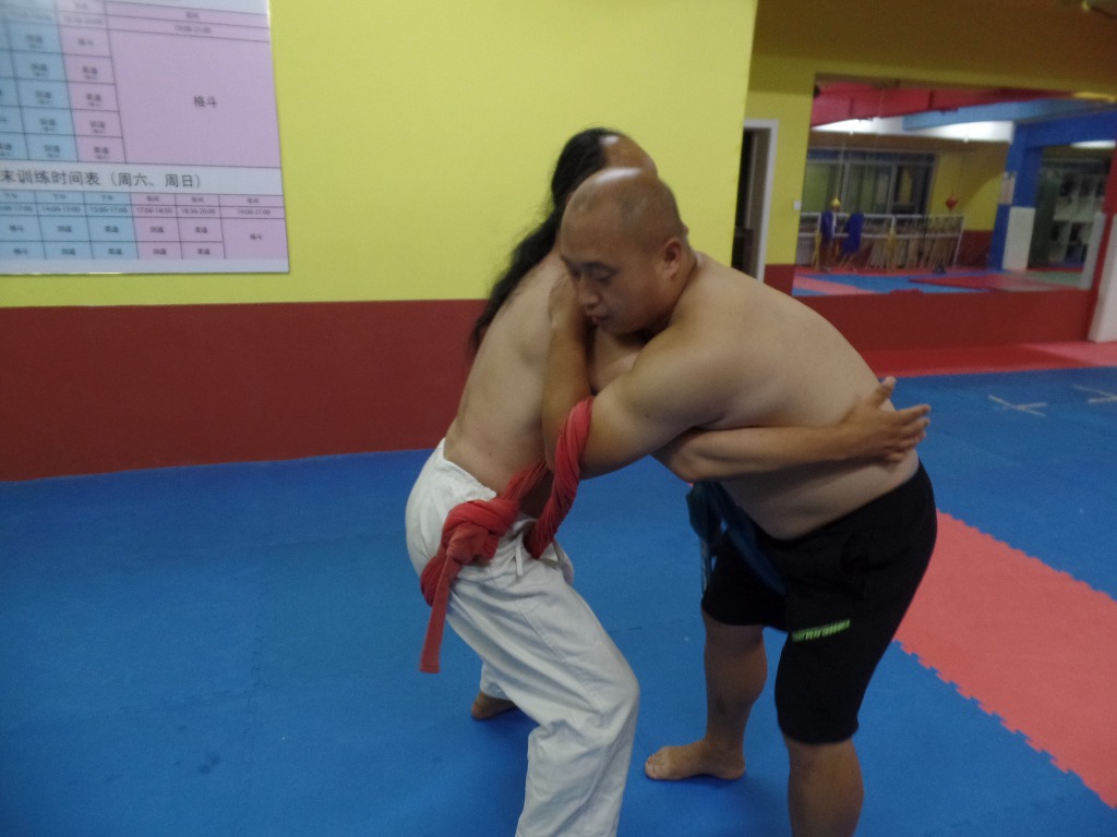 씨름처럼 샅바를 쎄게 당기지 않고 그 대신 어깨를 밀착해서 중심을 무너뜨린다.