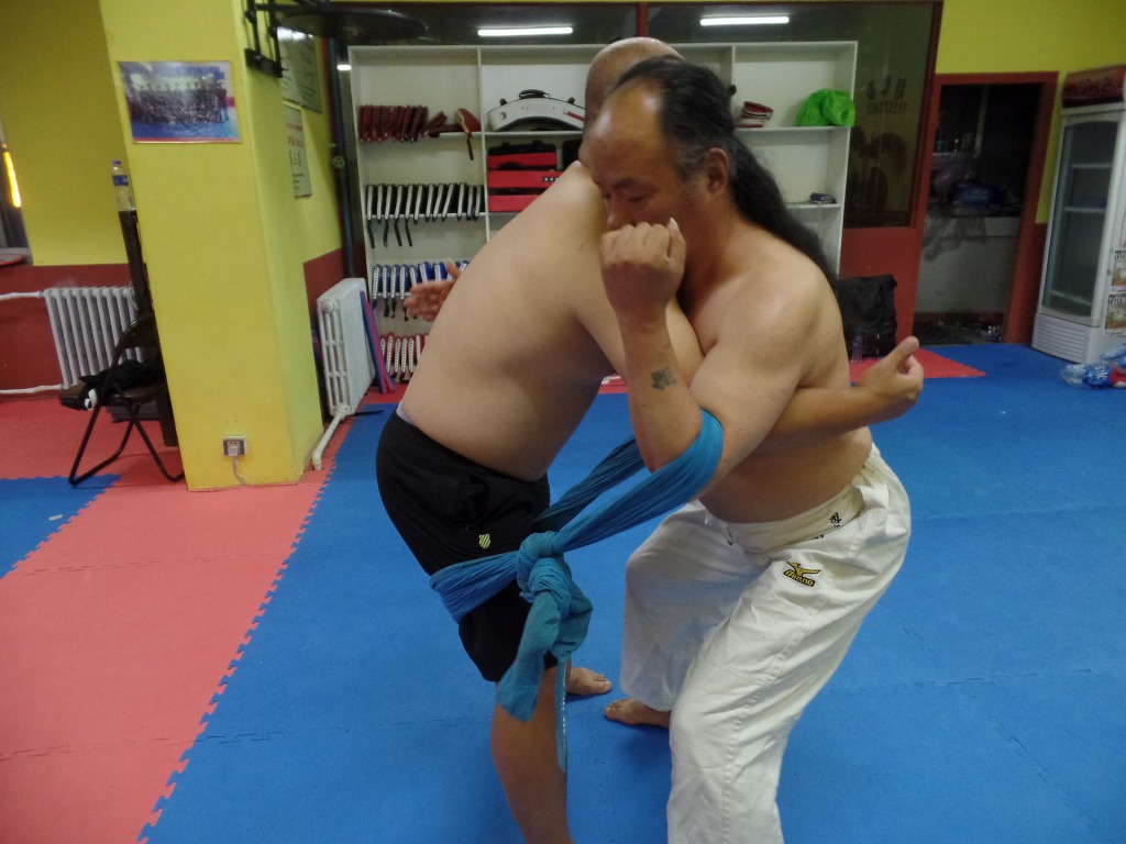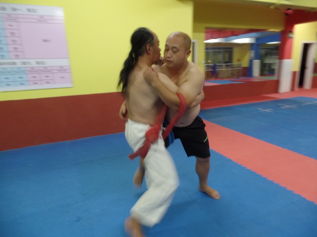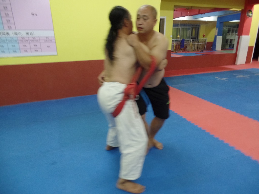 촬영이라 약식으로 진행되었으나 실제 겨룰때는 다소 과격하게 밀어 쓰러트리게 된다.