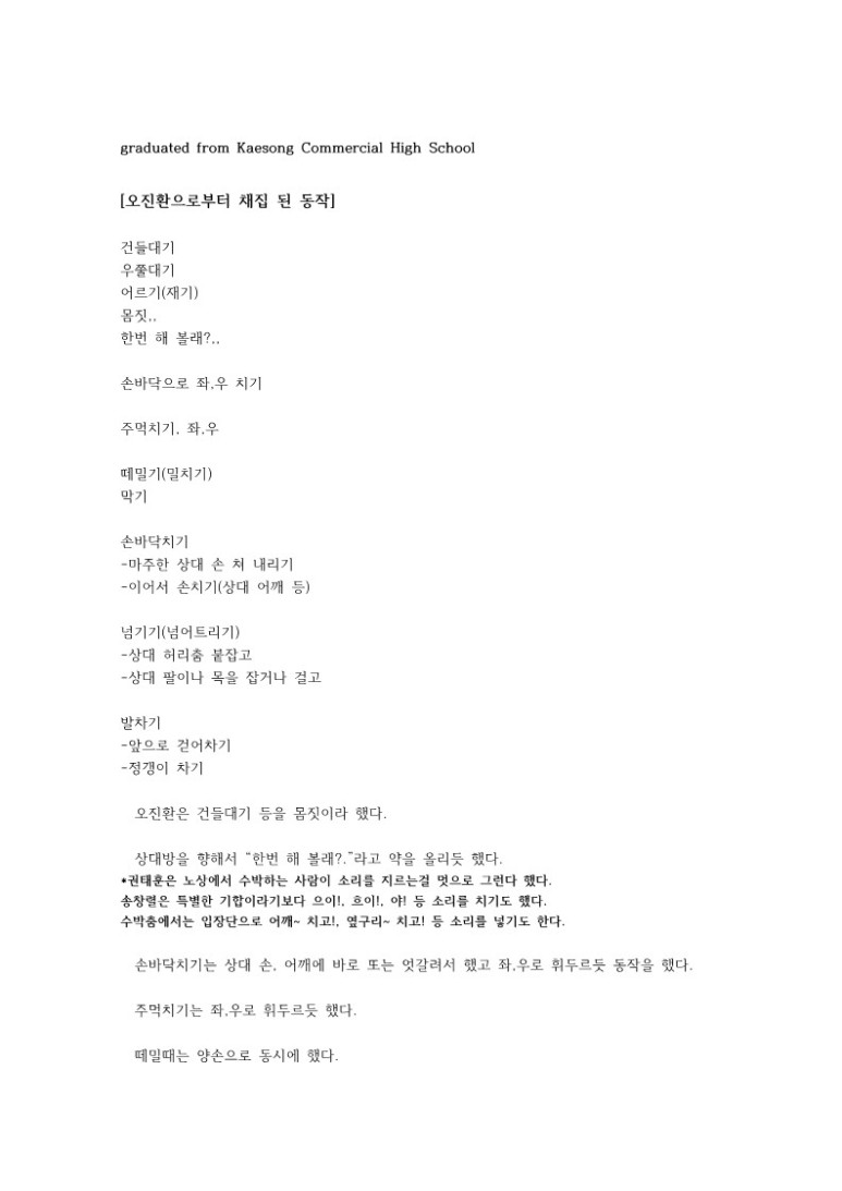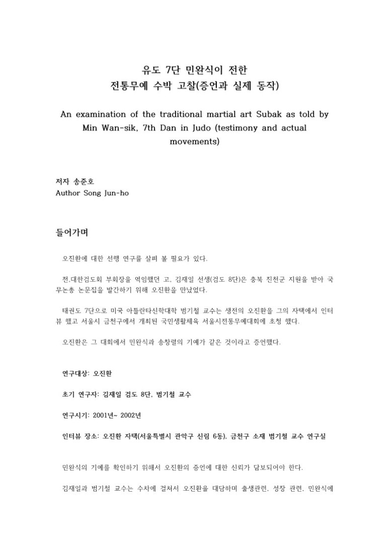 유도 7단 민완식이 전한 전통무예 수박 고찰(증언과 실제 동작) An examination of the traditional martial art Subak as told by Min Wan-sik, 7th Dan in Judo (testimony and actual movements)